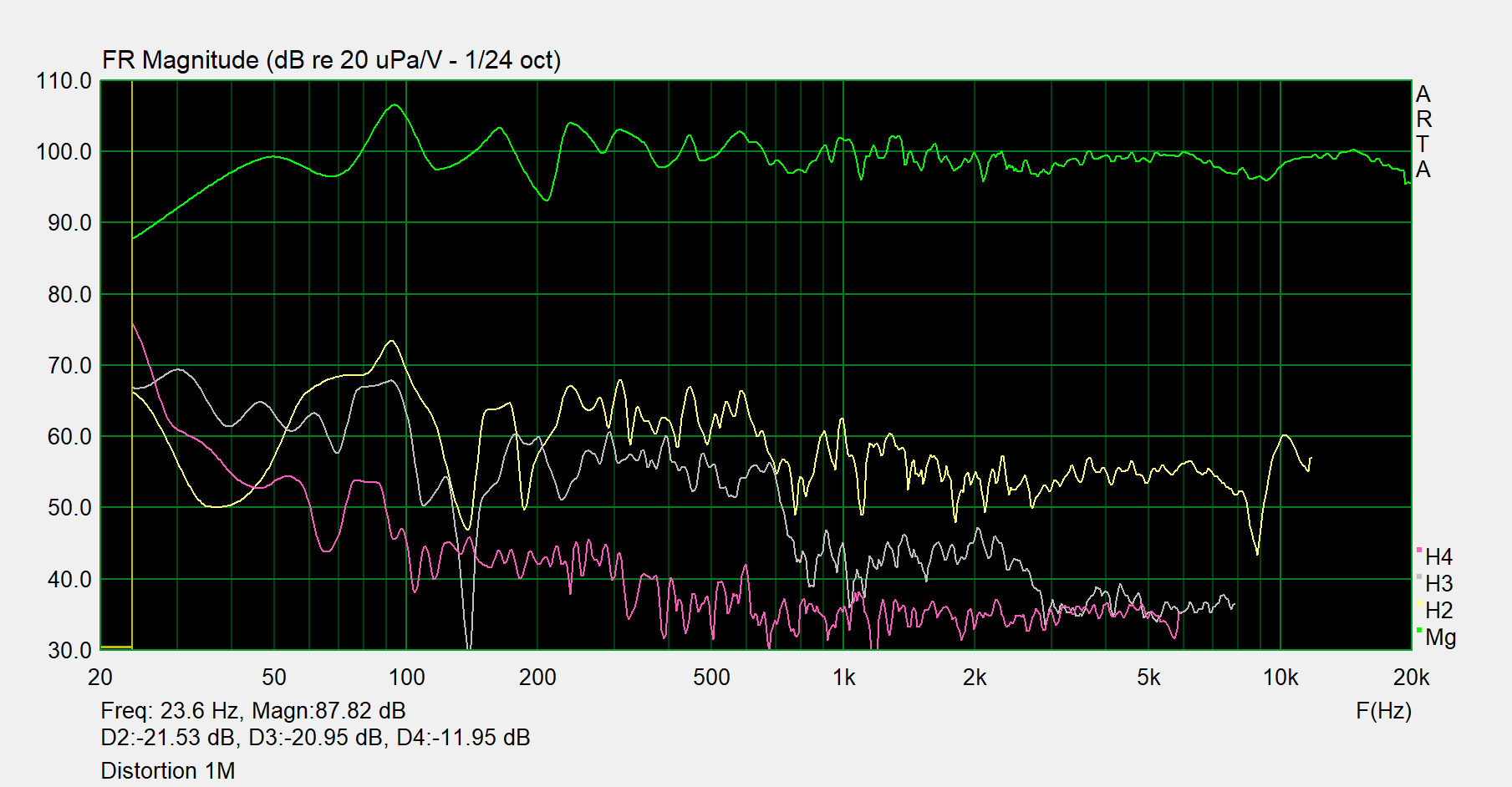 Current iteration is pretty nice. Here is distortion measured at 1M, SPL accurate. Plenty loud, plenty clean. Can definitely see that the Signature motor is not as advanced as the mid or the tweet.