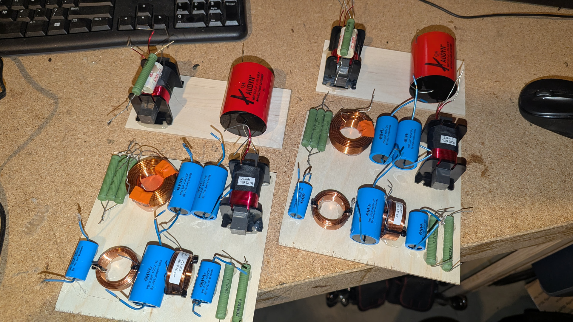 Here I sit listening to them. I think I like current crossover. I’ll know more in another hour or so. Have company coming over tonight, so will have to put shit away. They do not see the beauty in a floor full of components.