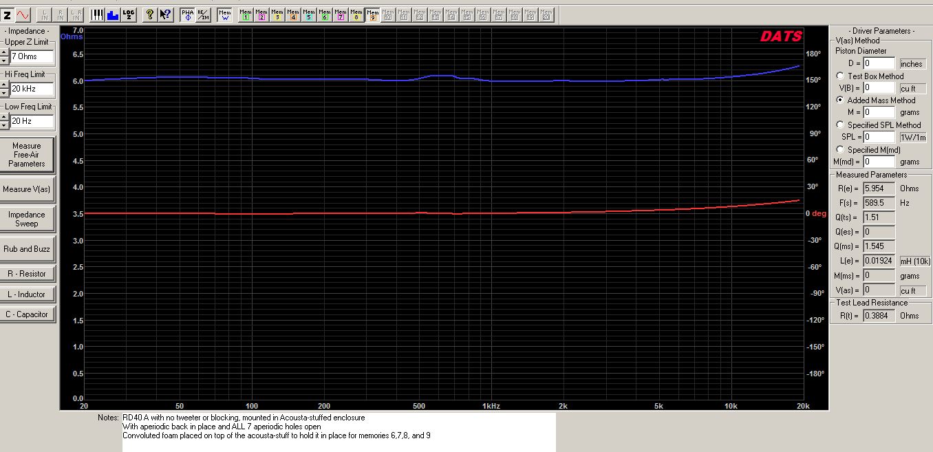 Time will tell if these measurements are accurate. I’m firing up my table saw today to start making the bass bins for the Esoteric 7" woofers. Then I will take some more measurements to see if I can get them to blend well at 150Hz with the RD40’s in my VituixCAD model.