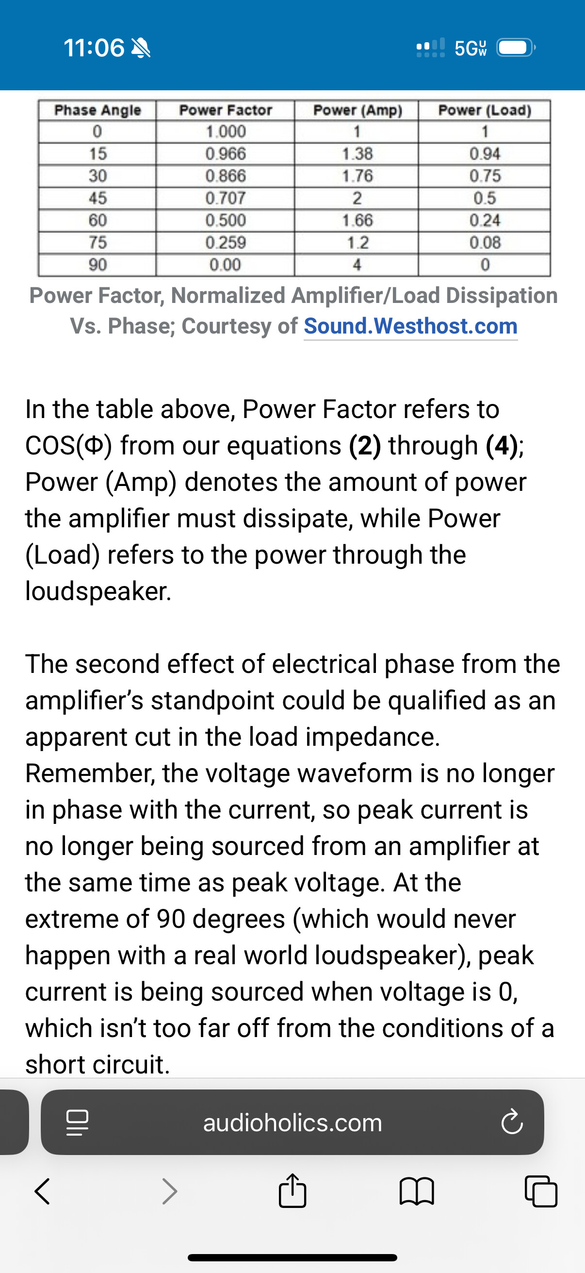 Not meaning to question, Just trying to learn more about this and came across this. This indicates phase does go to 90, which makes sense as a quarter of the cycle, and indicates 90 deg is virtually a short circuit to the amp.