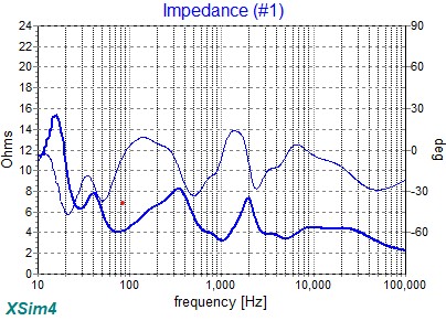 Definitely is highly inductive, hammering an 8 ohm woofer to a 100ish hz (closer to 125-150) crossover point passively.