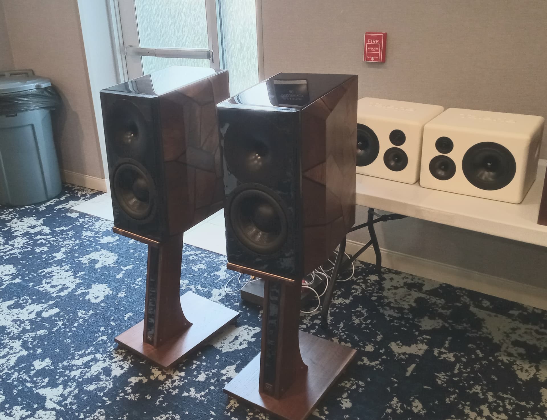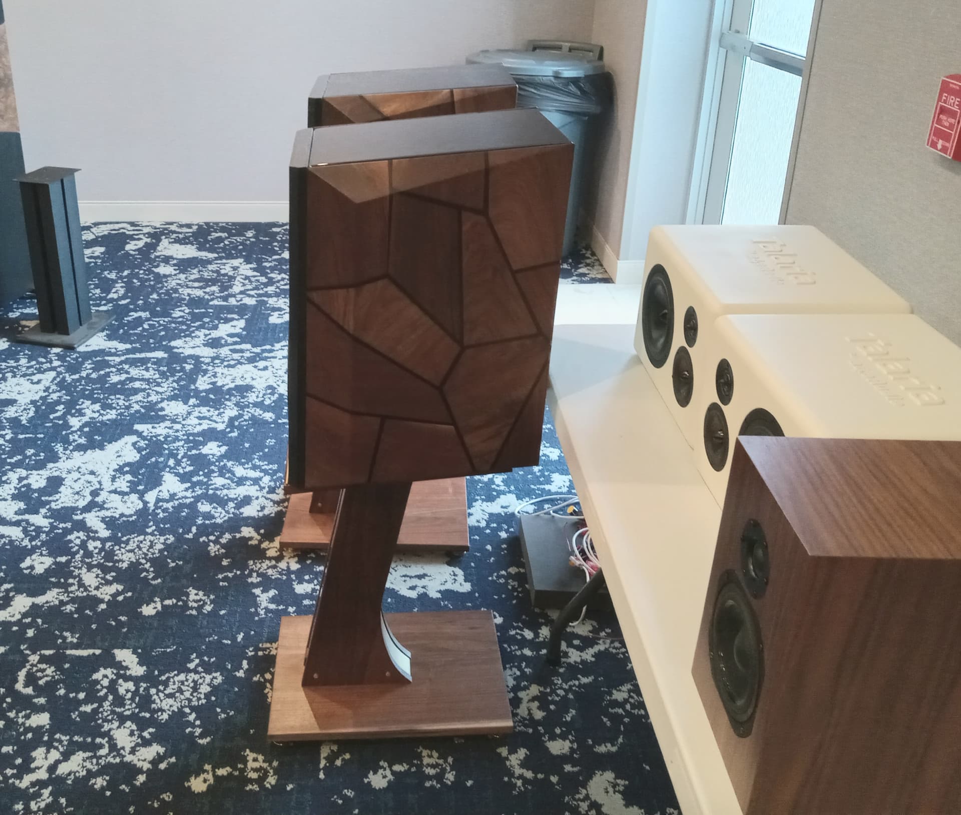The pictures of Kerry’s turtle sided speakers don’t capture their “presence”and their sound was just plain awesome, definitely the “Dog’s conkers”.