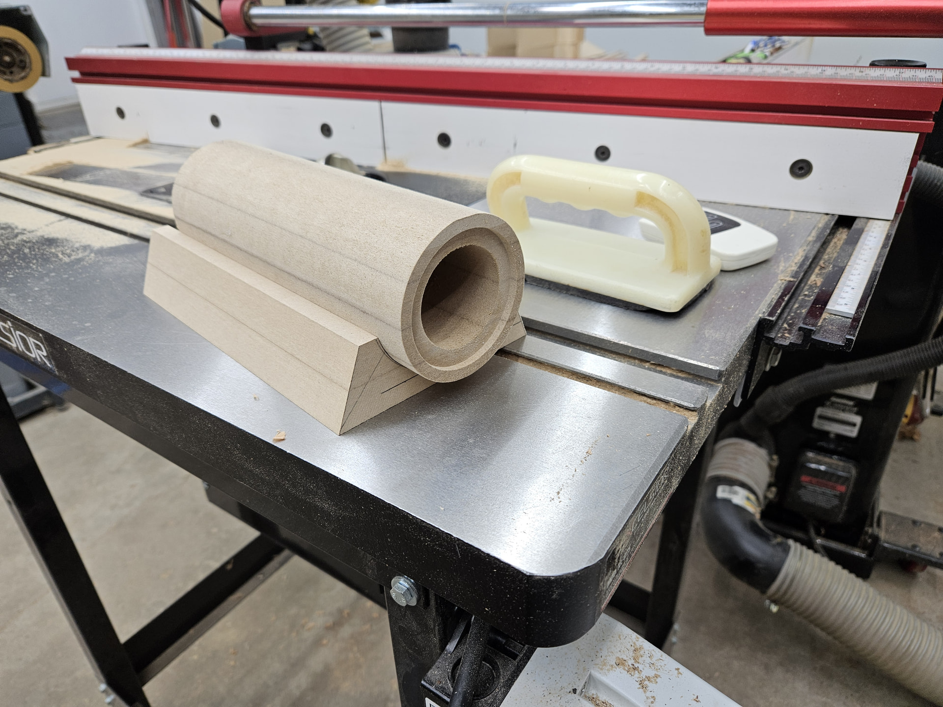 I’m thinking something like this shape. It wouldn’t need to go all the way through the depth of the speaker, just deep enough for the tweeter housing and sufficient space to hide the wire. Maybe make it out of the same wood the top/sides are currently made from? Could even cut/sand off that top layer and make it one cohesive shaped piece of matching hardwood.