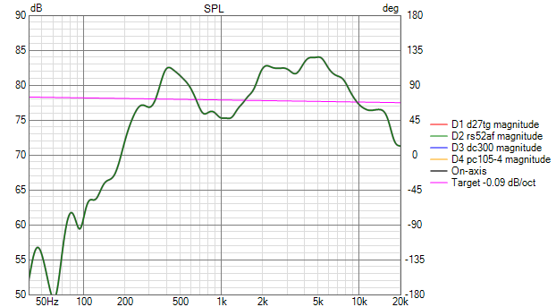 Not sure I will do this. Just throwing it out for discussion. I have 3 of the RS52FN-8’s in stock, so I would only have to pick up one addtional driver to do this. Using an MTM would allow me to burn up some of the excess sensitivity to achieve a slightly lower xover point, maybe 600Hz or so instead of 700-800Hz for a TM arrangement. On the negative side, the MTM will have poor vertical directivity compared to a TM. So maybe just a TMWW would be better.