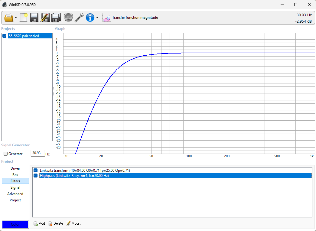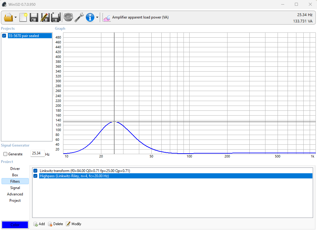 Sorry, poorly documented. Used WinISD closed box with the P830845 - kept reducing box size until the Qt was about 1.0, then found I had a 38 liter test box. Mounted the woofer and ran some sweeps with varying capacitance 350-600uF. Have not tried playing with the filters in WinISD for similar results, and I don’t think those formulas give you a capacitance value.