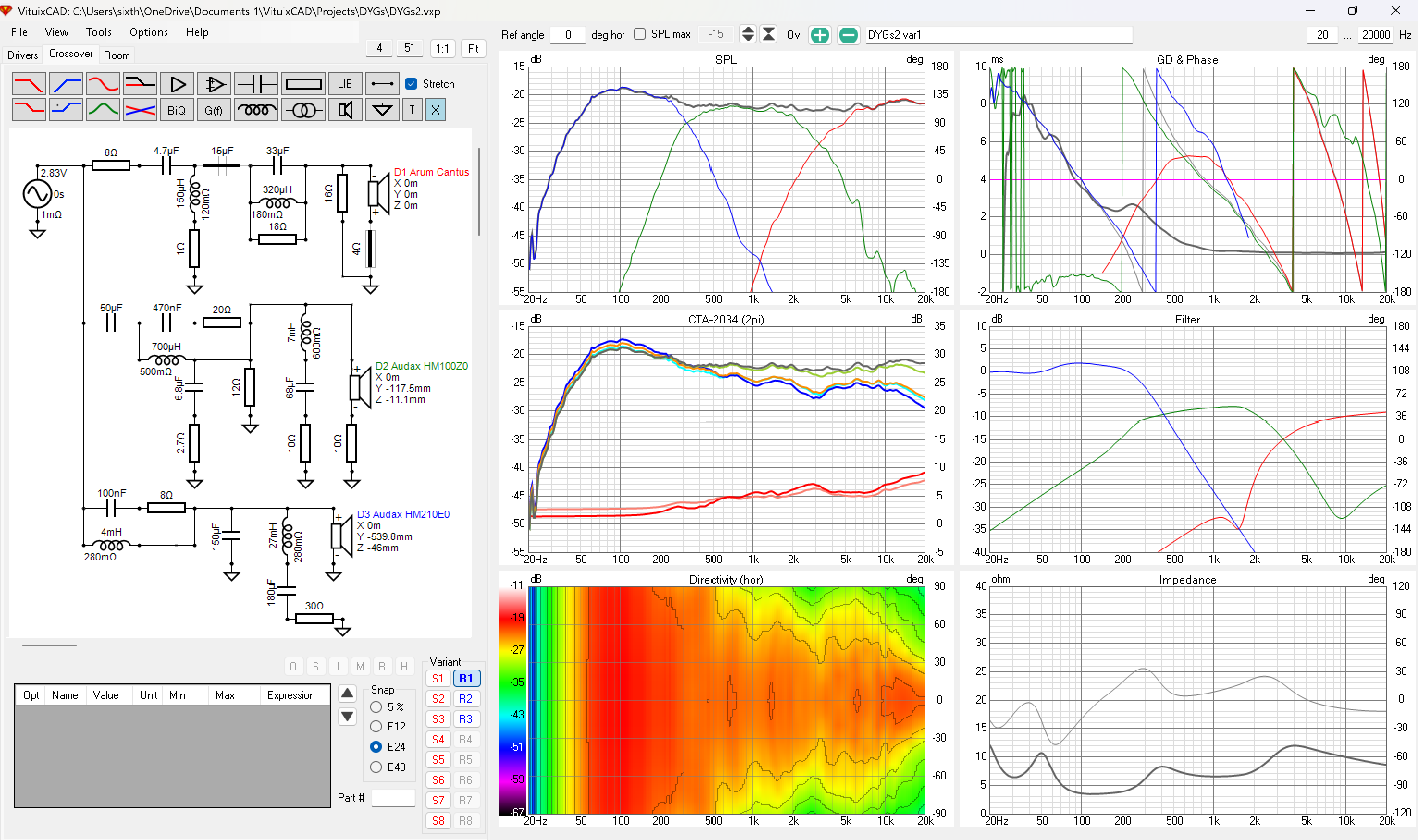 That’s an interesting network on the Audax mid. How did you come up with that configuration (the 0.7 mH branch feeding forward/around) ?