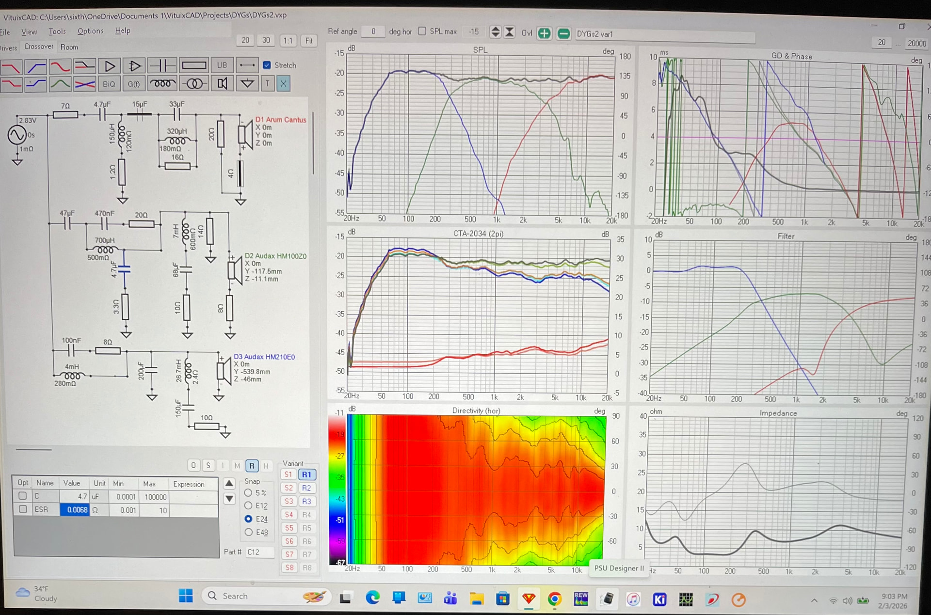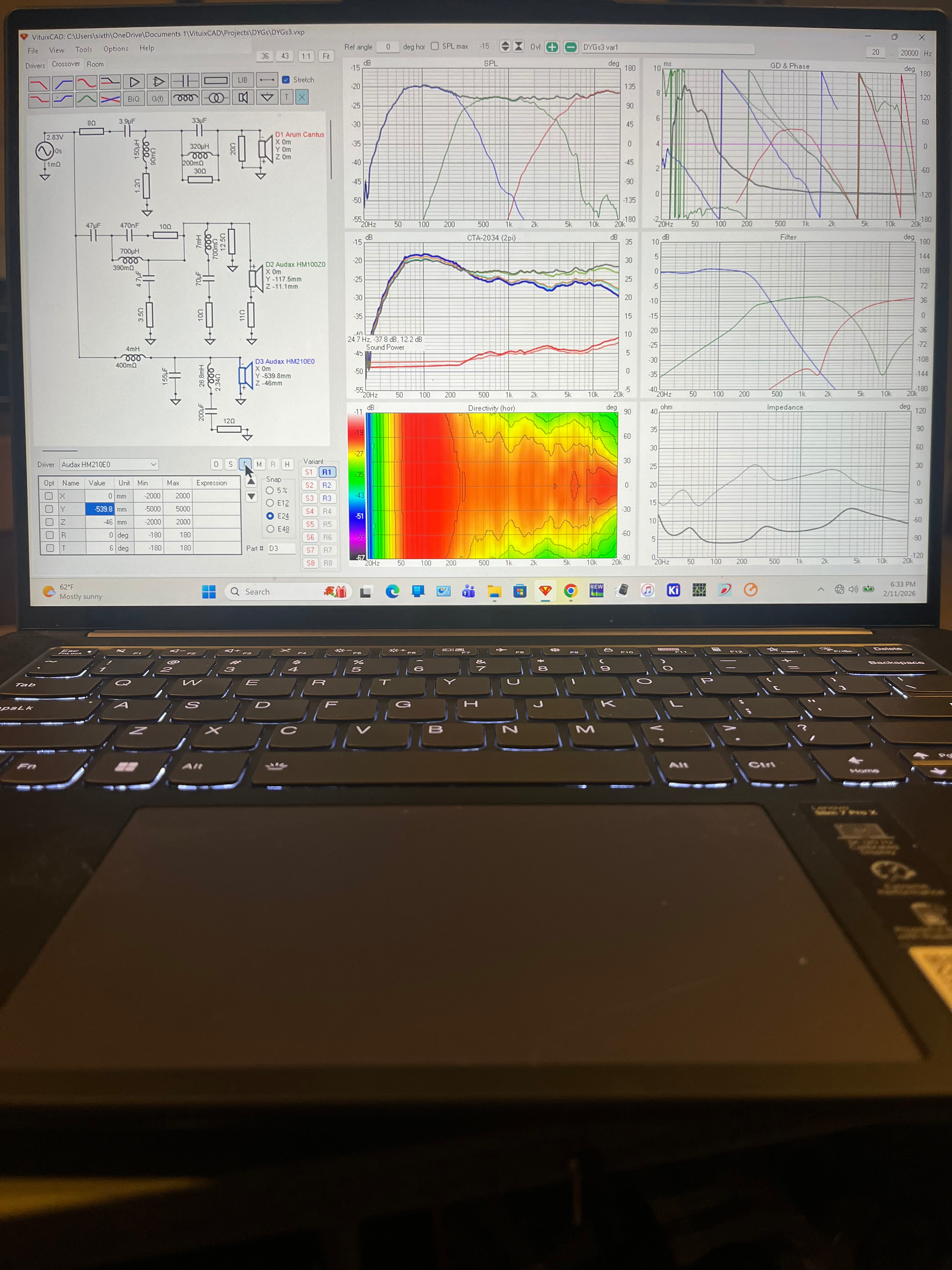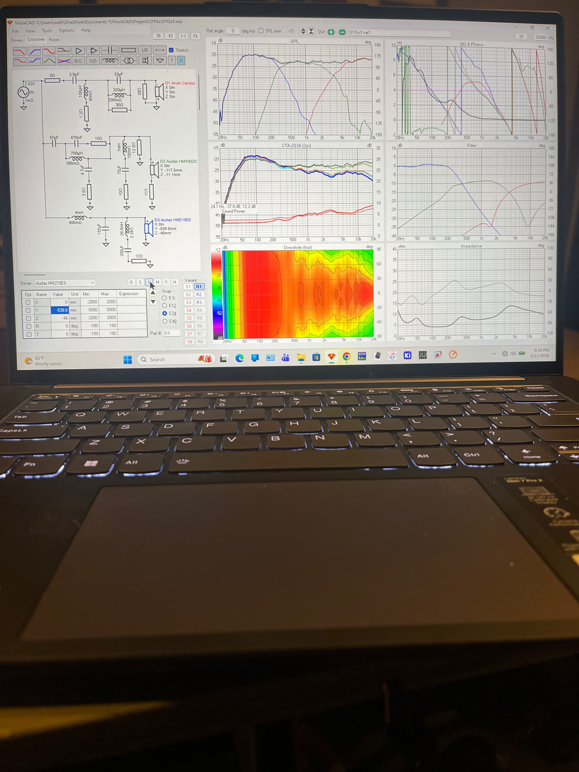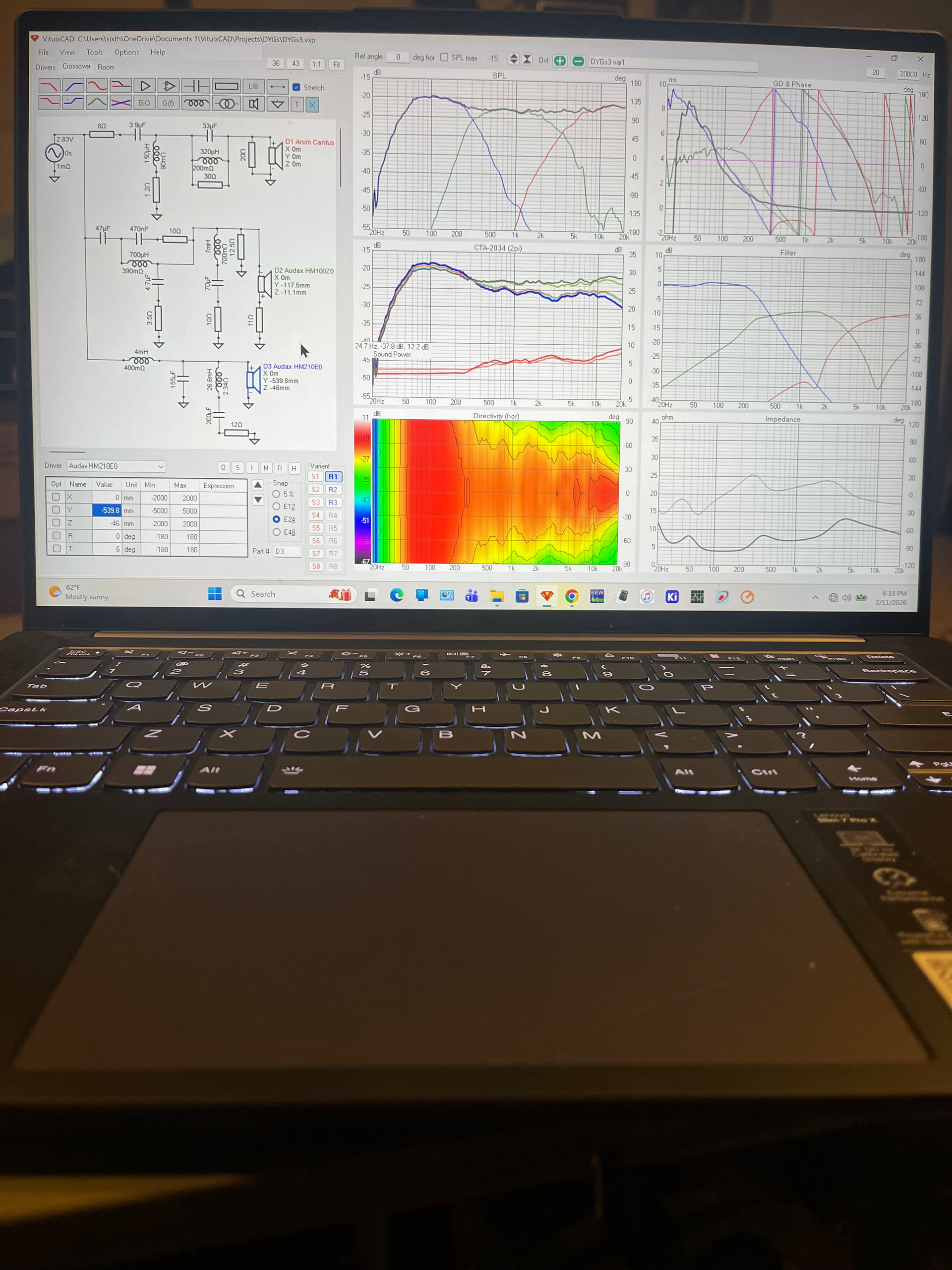 SIMULATION (you can see the individual drivers SPL, phase, and filters)