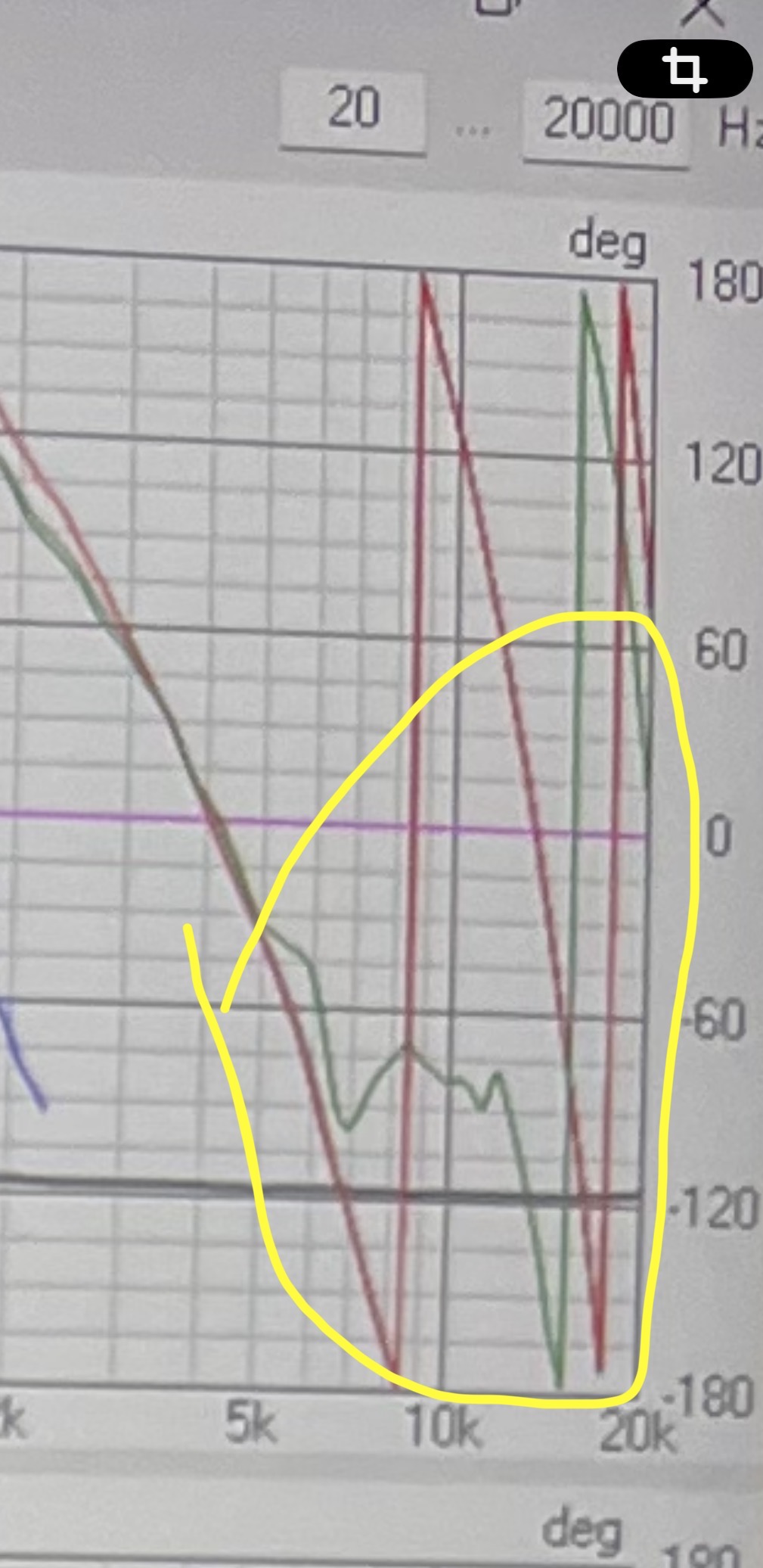 Wait, the log scale threw me off, woofer and mid in phase is worse? As FR is worse because the rotation lines are actually further apart, 200 and 400. As apposed to them out of phase where they are 100 and 200? Plus the FR is smoother?
