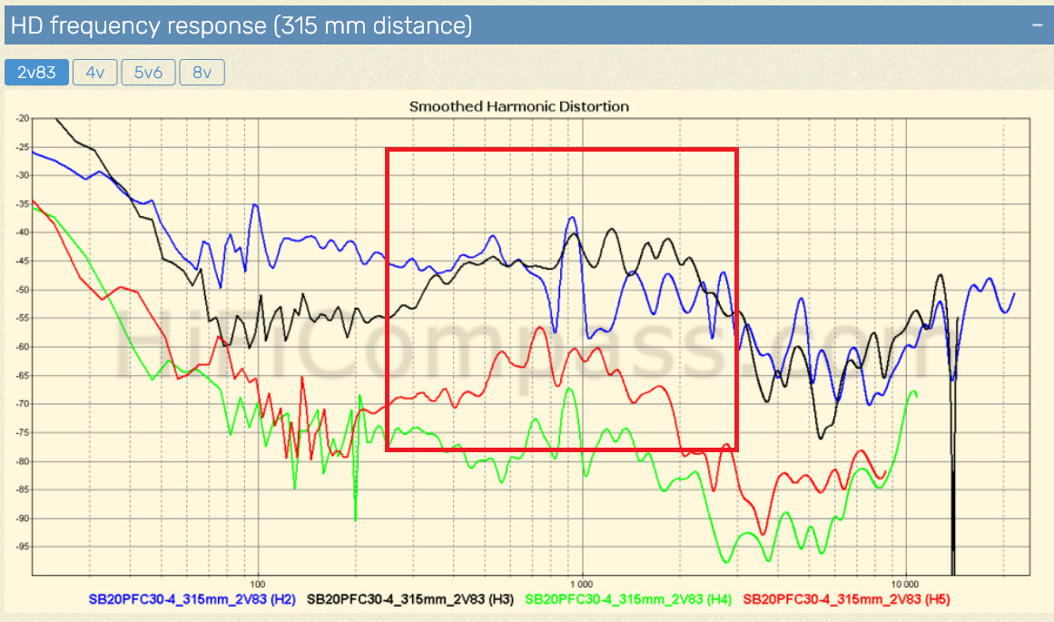 Thx for posting this chart. I’m considering a few two-way designs and the distortion rise though-out a broad Xover / mid+ range would be problematic. For me it’s first about getting an extended midrange response clean.