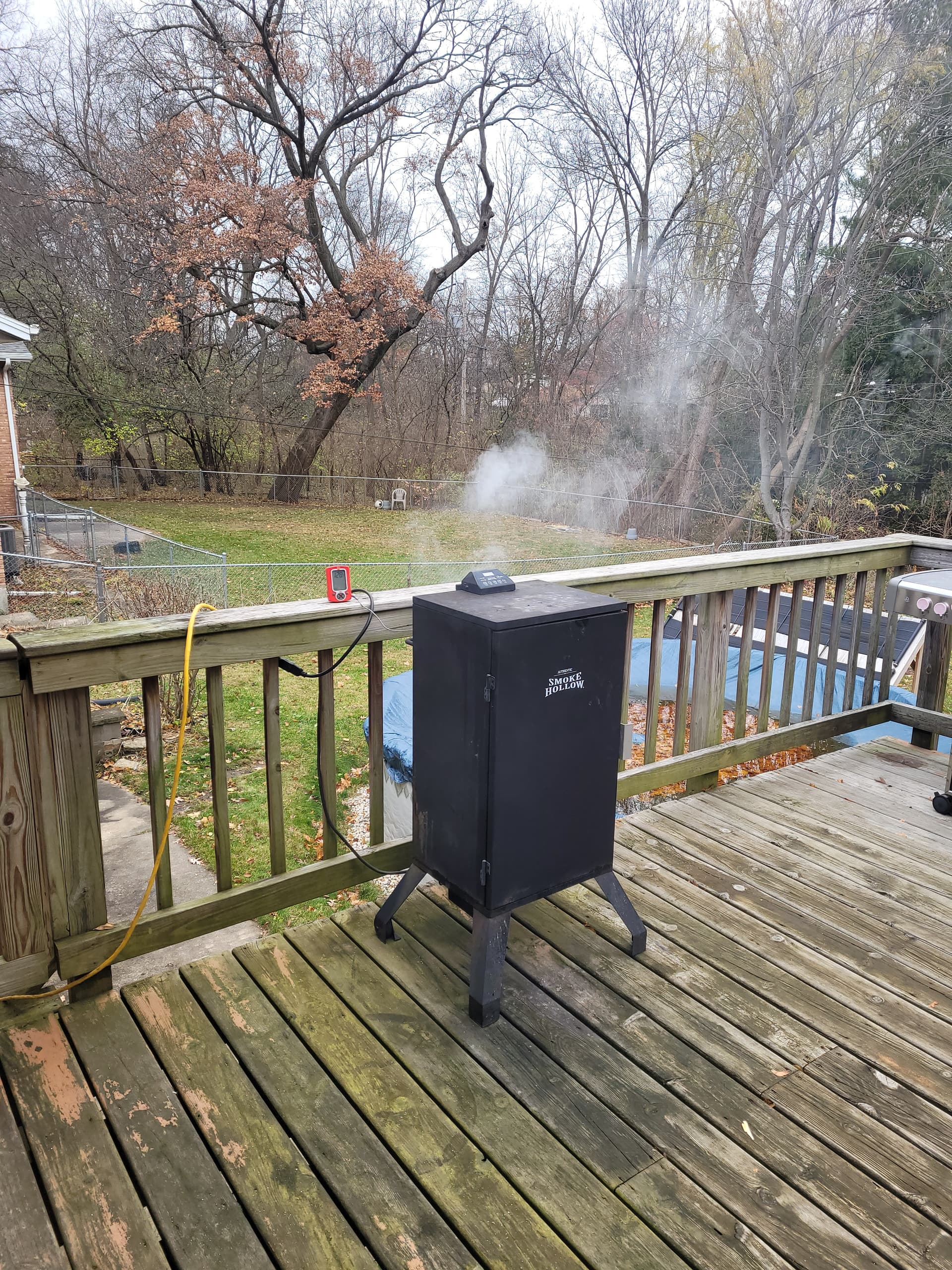 So I decided I wanted a much smaller, self regulating electric smoker. I bought a cheap Smoke Hollow smoker from Menards. It was late fall so they had it deeply discounted to around $150 IIRC. I see they no longer carry that brand. Anyway I like it. It has three removable racks so if I cut the ribs racks in half I can fit 3 full racks in it. Probably could fit 2 large pork butts in there, probably 2 small/medium turkeys.