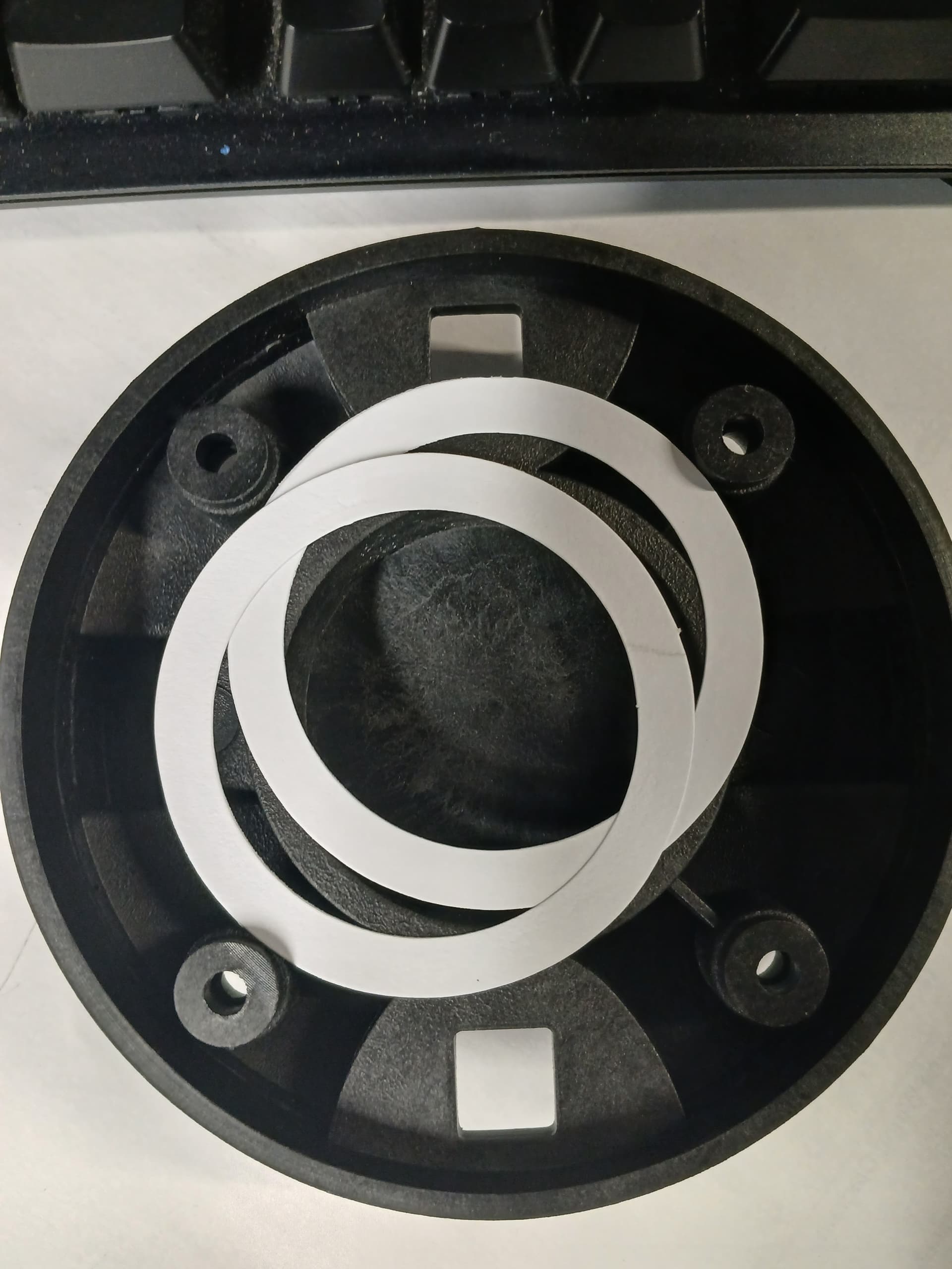 Let’s DIY! Opened the back to see that the back chamber is sealed by two peices of paper, we can do better. I got some craft foam and made a new gasket: