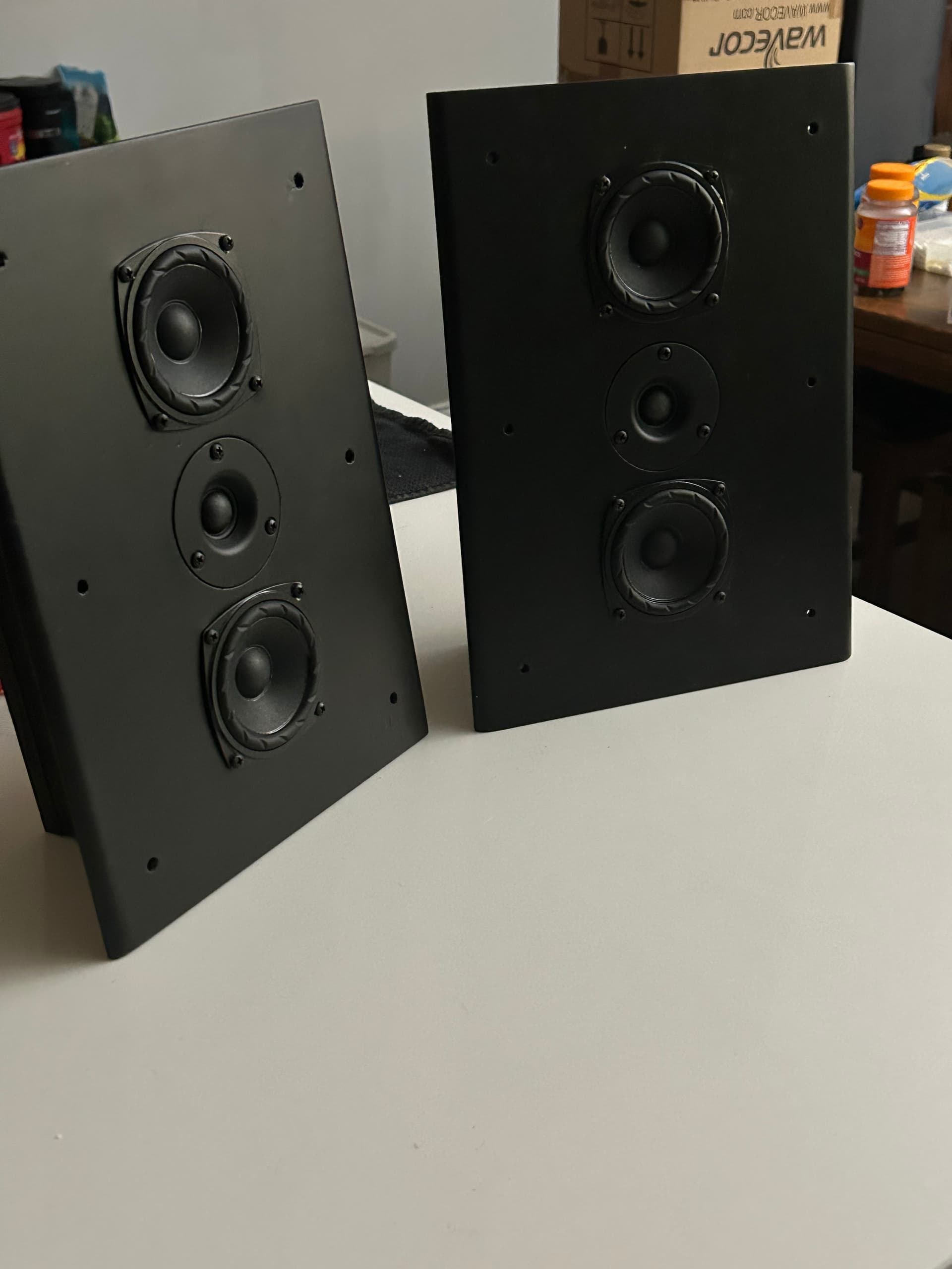 Maybe spin own thread off, but i suck at documenting/photo-ing - too much adhd surge heh. Got my 1st iteration of mtm for Indy26 readied. Awaiting hole sealing glue to dry. Figured put a speak on connector on back and not gonna bother running individual wires for each mid, run as a ‘system’. Bummed I f’d up the measurements on the darker lighted one on the right where see one mid close to tweet than other - meh, see if I have enough curiosity to measure difference in overall assembly of baffle.
