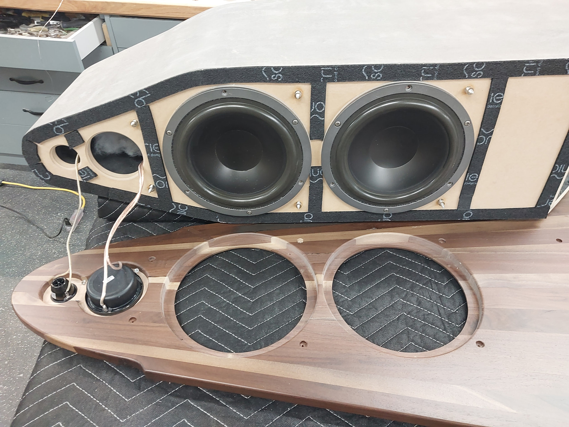 I was kindof worried about that when you mentioned rear mounting… BUT you seemed to have rebated them pretty far up into the material that left pretty minimal resess IMO. I find 3-was to be just dang ornery to work with. That is why I have quite the love-hate relationship with them. They have such high potential, but alot of potential to misbehave too. Takes alot of effort to reign them in compared to a 2-way, which is usually alot more straight forward.