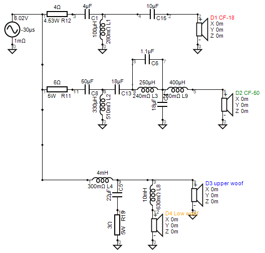 What you have here is a good attempt at a 3.5way. The lower woofer could take advantage of the upper woofer if it was attached after the upper woofer lowpass, and you might not need as large a coil on the lower.