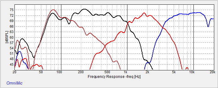 I stink at three ways, but I donāt stink as bad as I did before I found out that I did. I got them all buttoned up and the response looked bad, not like the prototype crossover at all. probably had some inductors too close together. Good thing I can take the bottom off with six screws. I spent a couple days coming up with a new crossover. It has more BSC and more symmetrical slopes. The XO points are approx. 1K and 3K.. I tried to get that mid to go lower but just couldnāt get there. I do like the crispness of the CF-18 tweeter. Itās got me thinking of a small two way using it. The wheels are not motorized, but that would be cool.