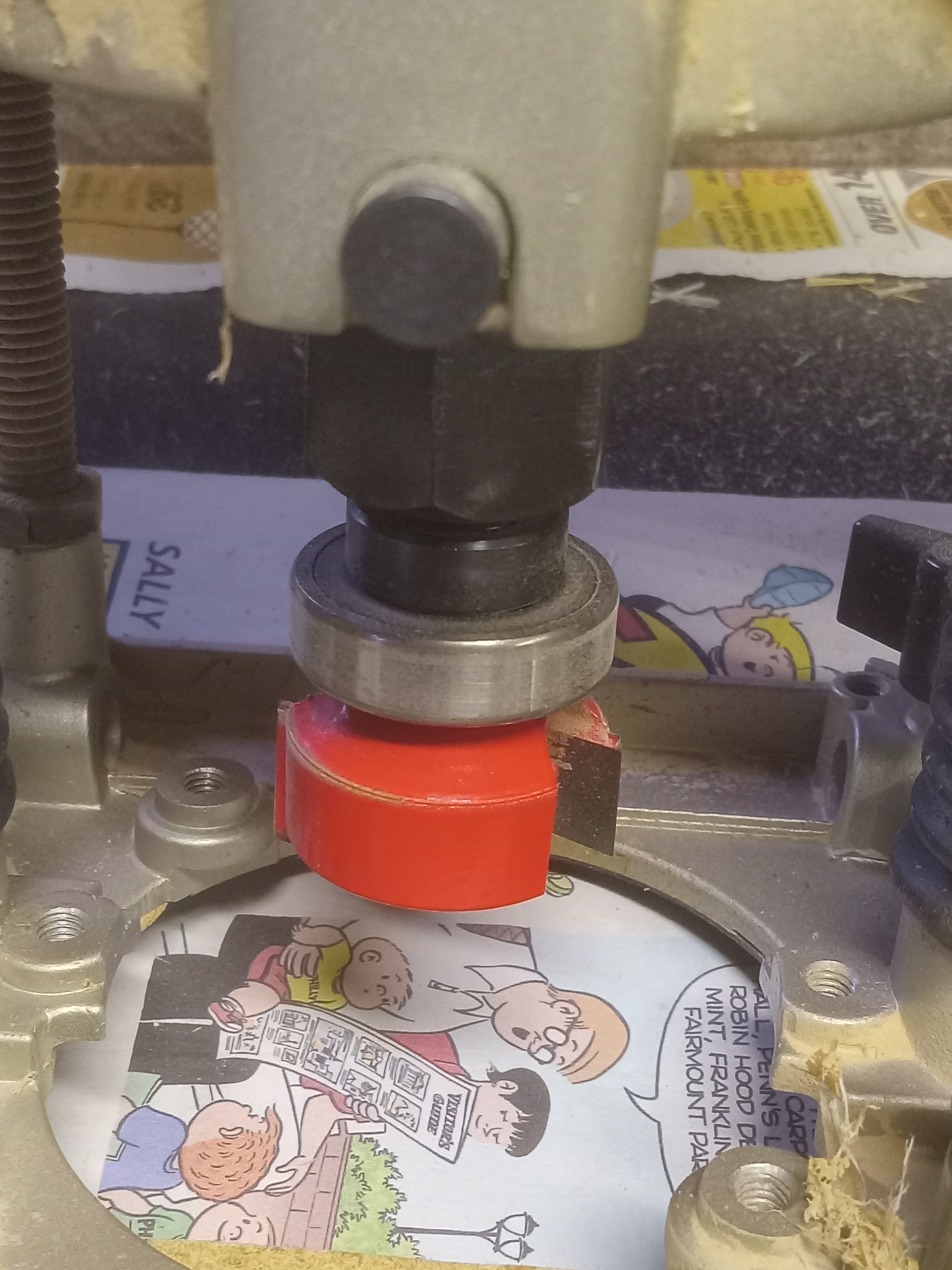 Bought a Freud 1.25” mortise bit and a 1.125” bearing from Amazon to make this relief adjustment. This yields a 1/16” trimming.