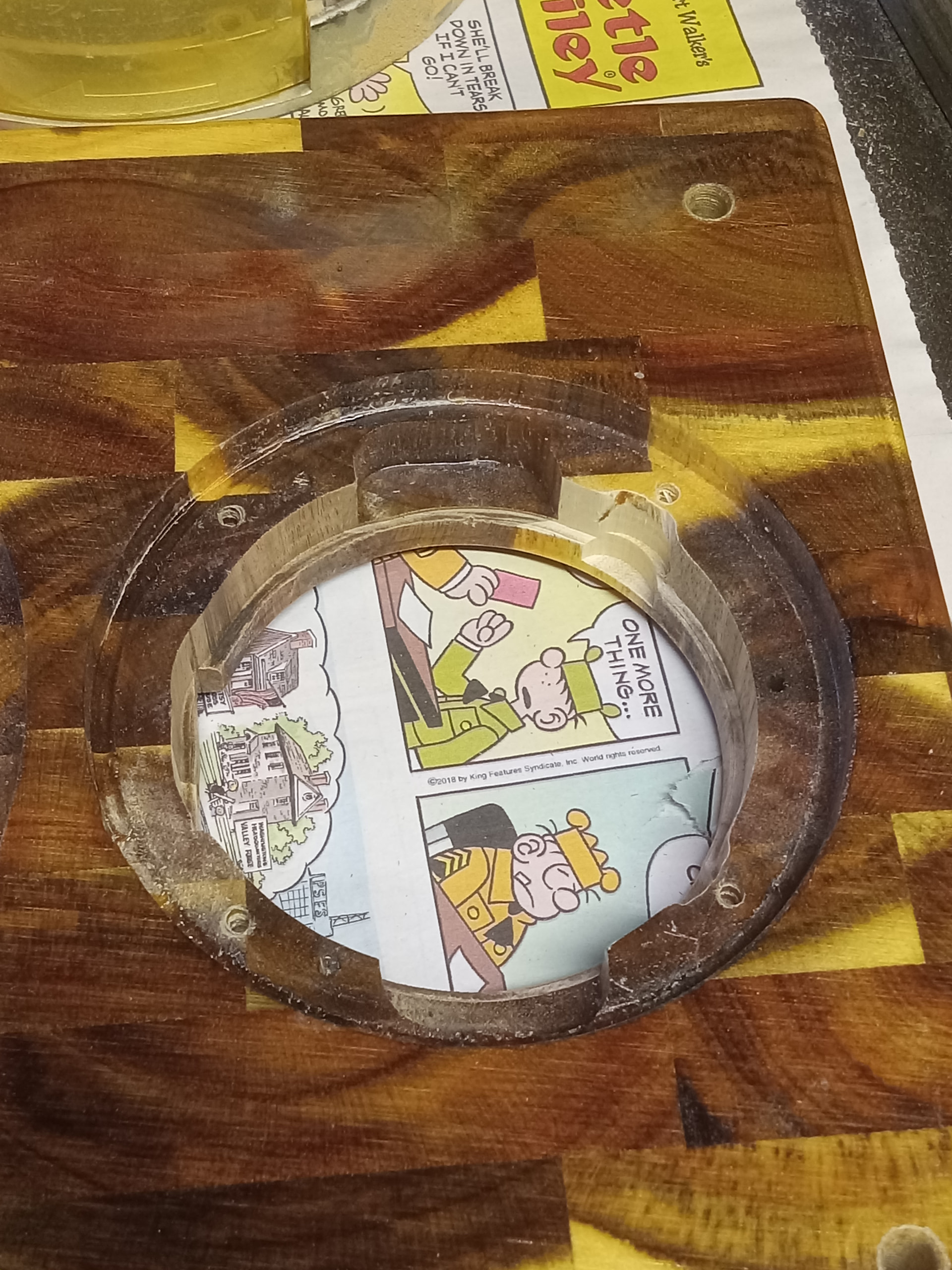 The Wavecor tweeters have that plastic ridge behind the face, and it was too large to fit within the Misco’s previously cut through hole. The 1/16” trim radius was all I needed, and a bit with that dimension cut could come in VERY handy quite often. I did use my dremel to remove the red paint on the shaft and locate the bearing closer to the cutters. Those with a mill could likely reduce this gap further.