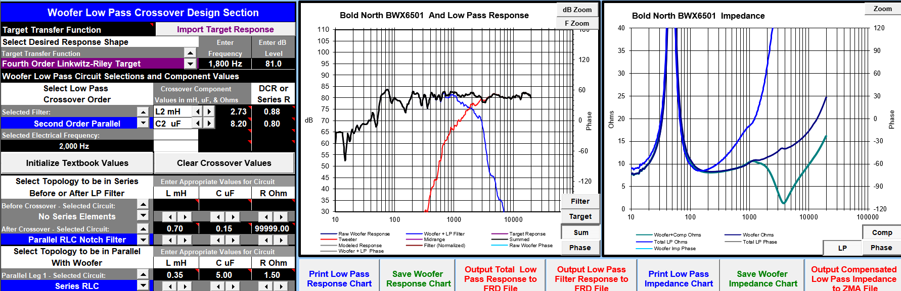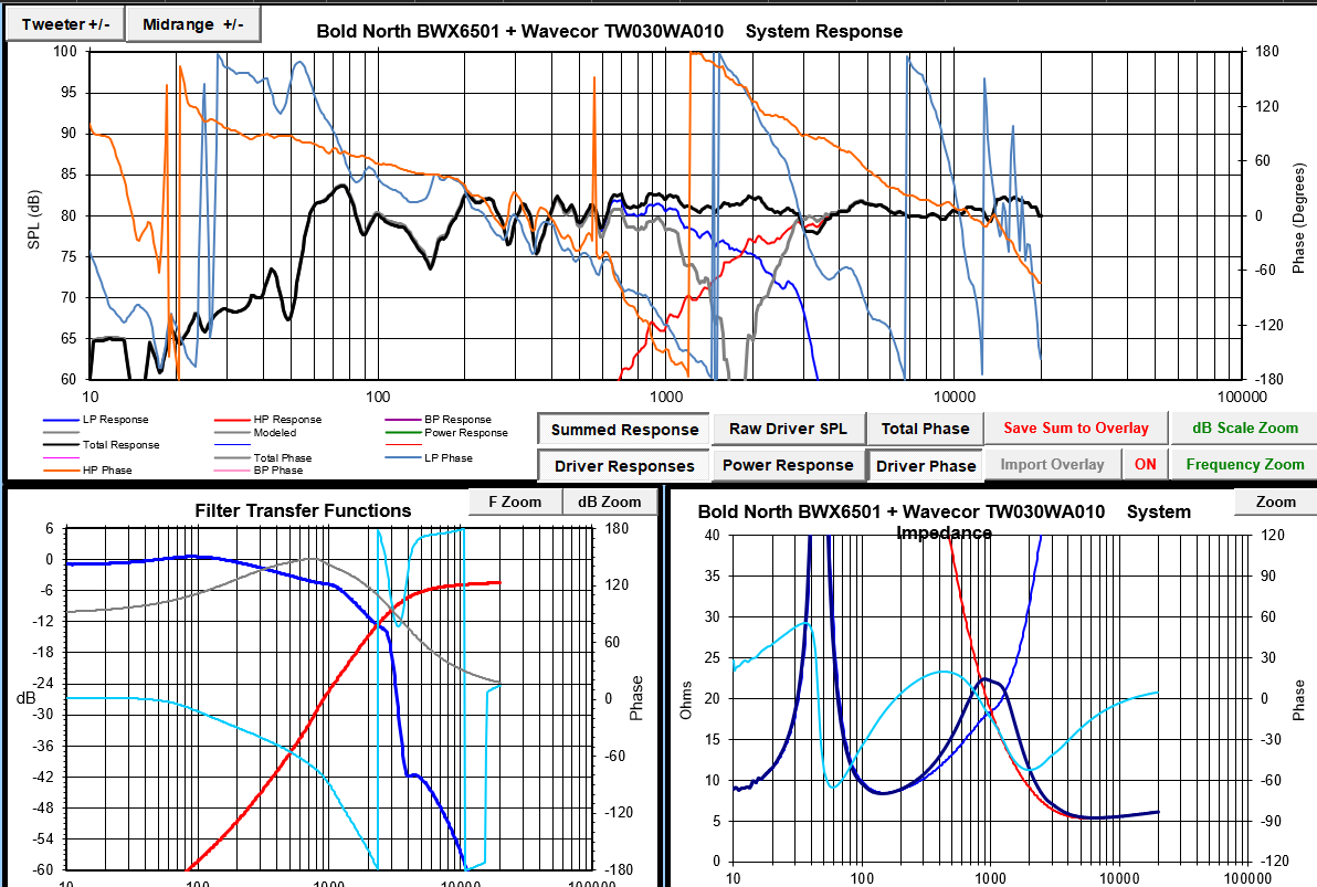 Okay, after hours of fiddling around, I think the blending is as good as I can get it. Getting a good result for each driver in this case was easy, but blending them was a little more difficult.