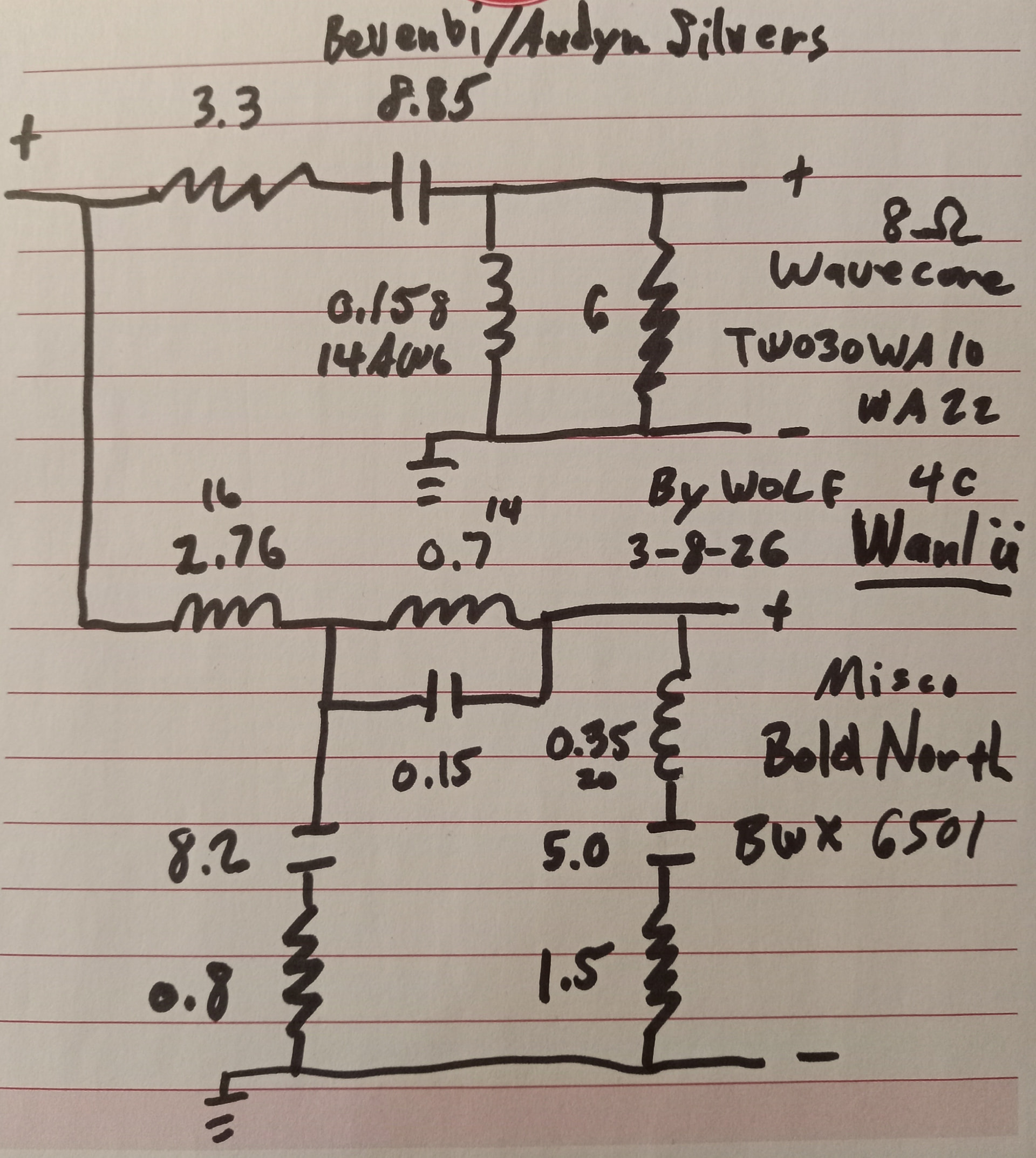 I increased the front series resistor for the tweeter from 2.7 to 3.3 ohms for balance.
