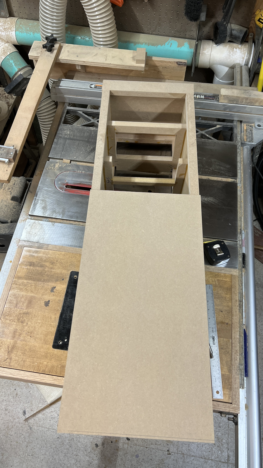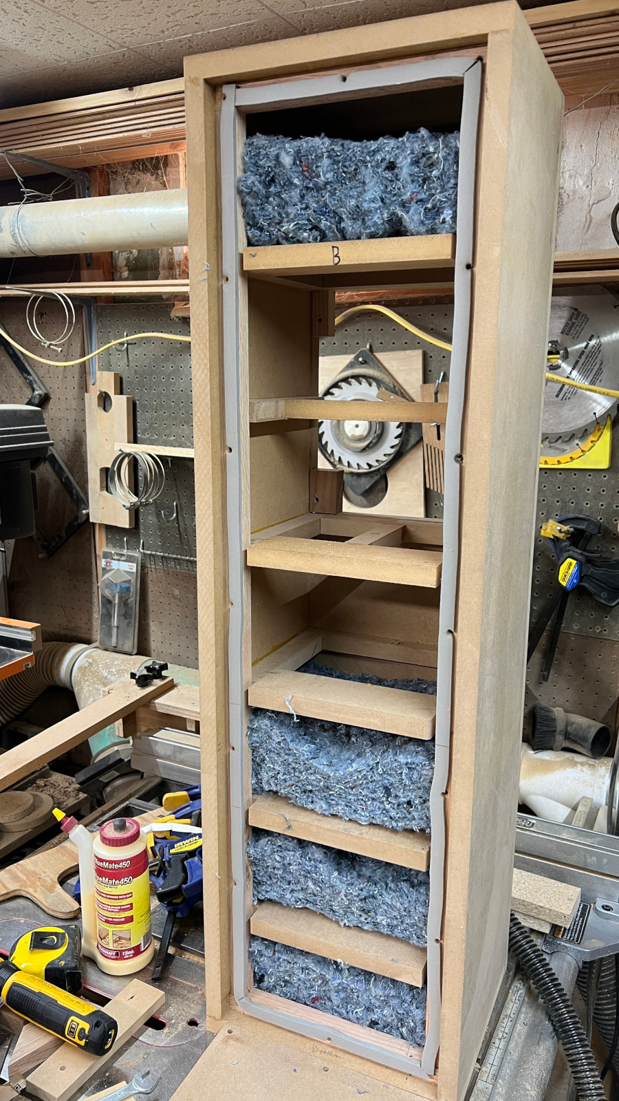 I think I’ll need to stuff the bottom to eliminate possible pipe resonances. With all the bracing, I thought a removable back would make that easier to adjust.