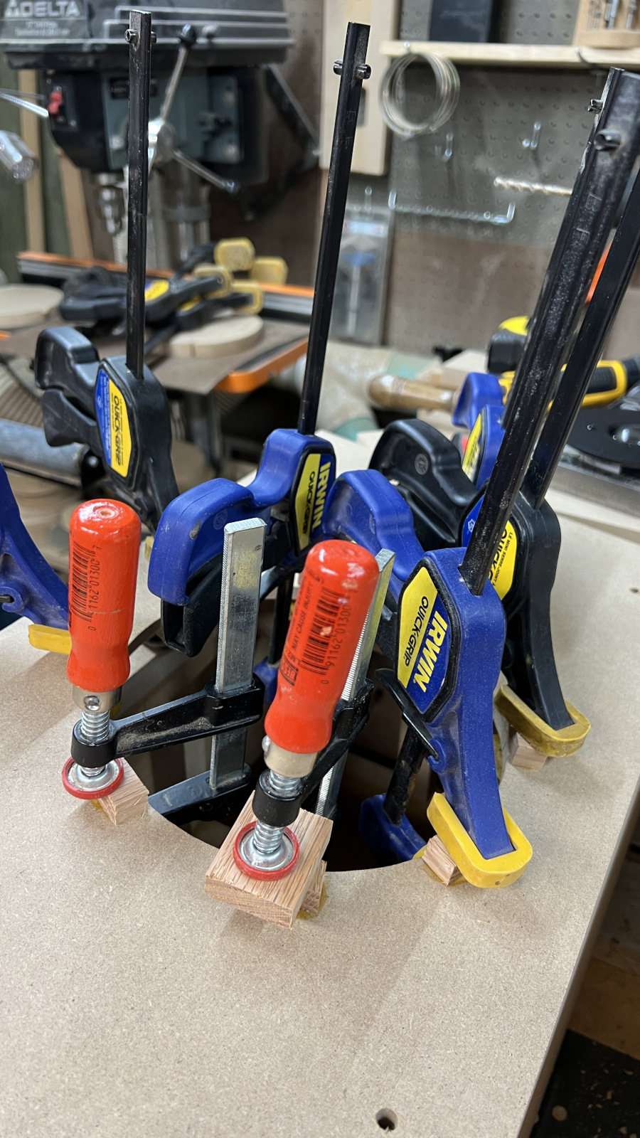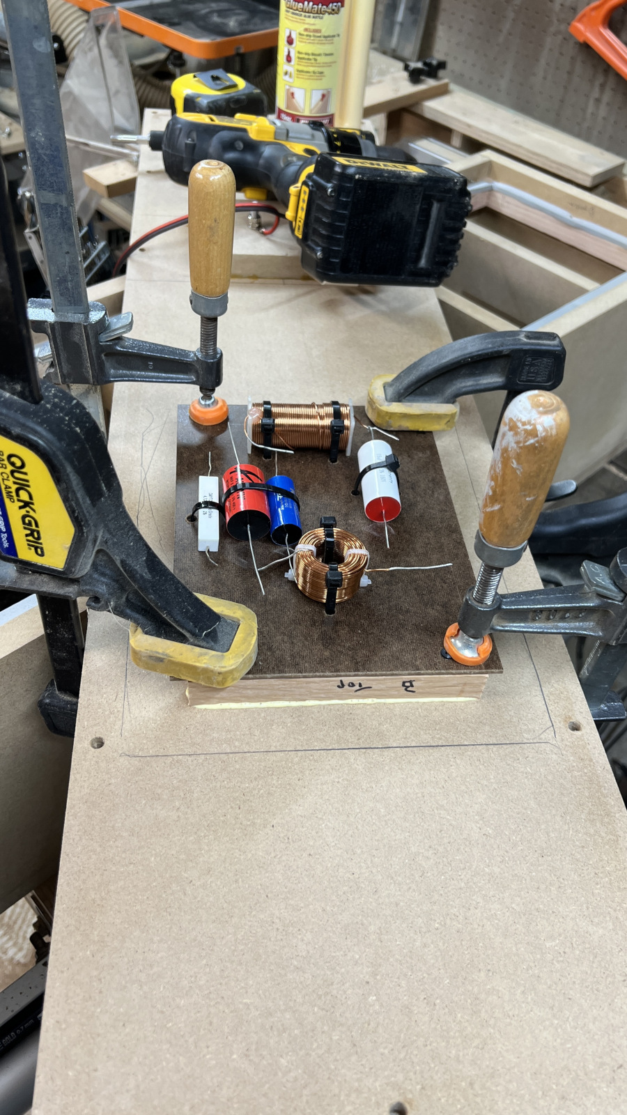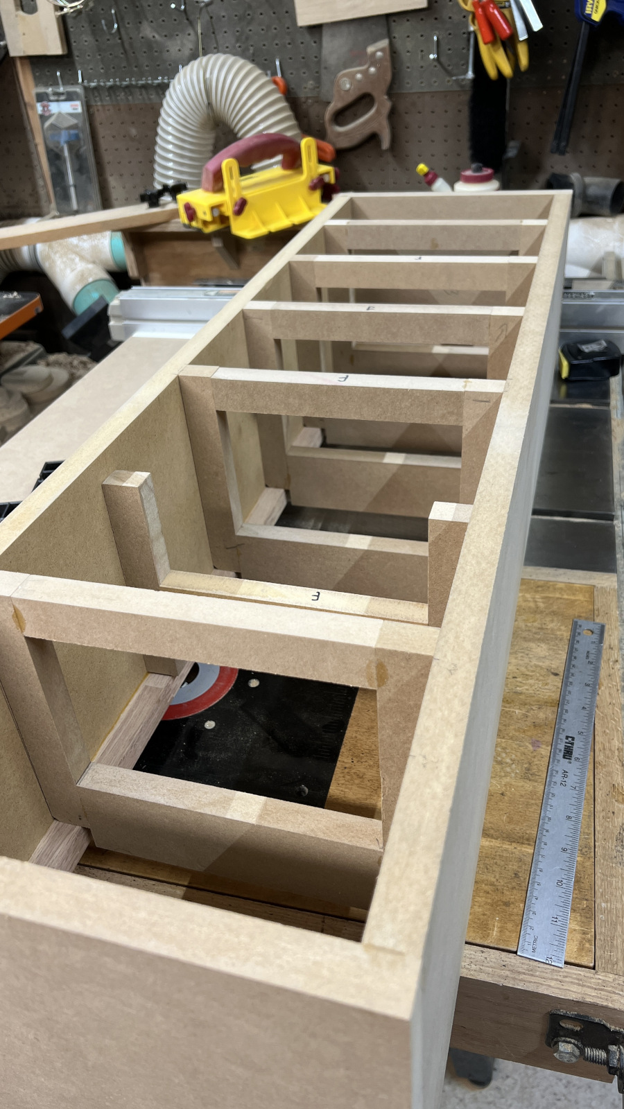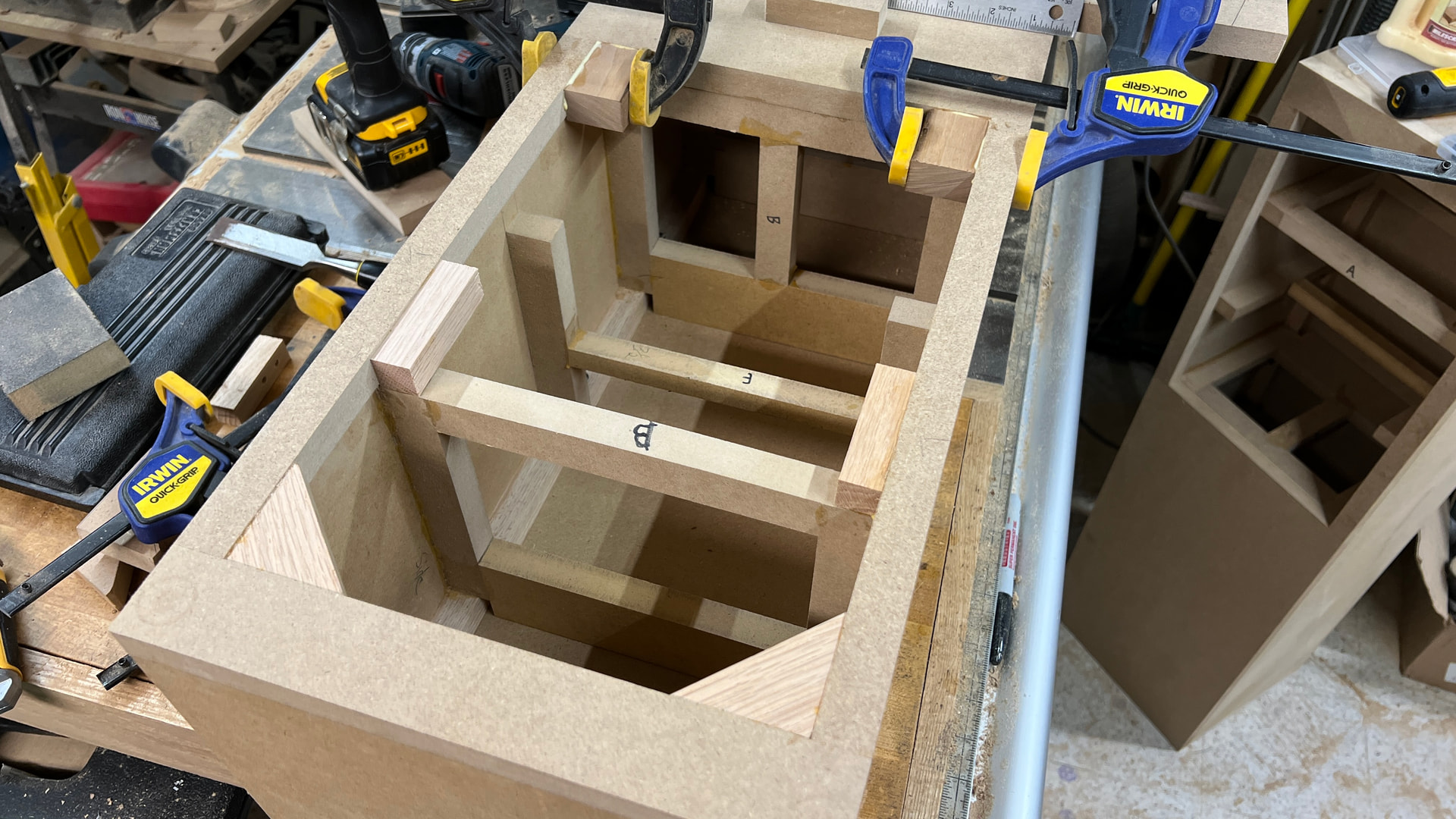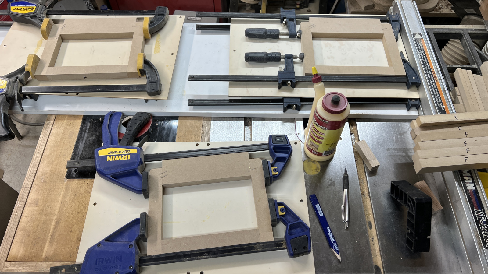 President’s Day is an observed holiday at our company for some reason, but not the day after Thanksgiving. Oh well - it was a good day to work on the bracing for these. Just pieces of scrap MDF and more clamps.