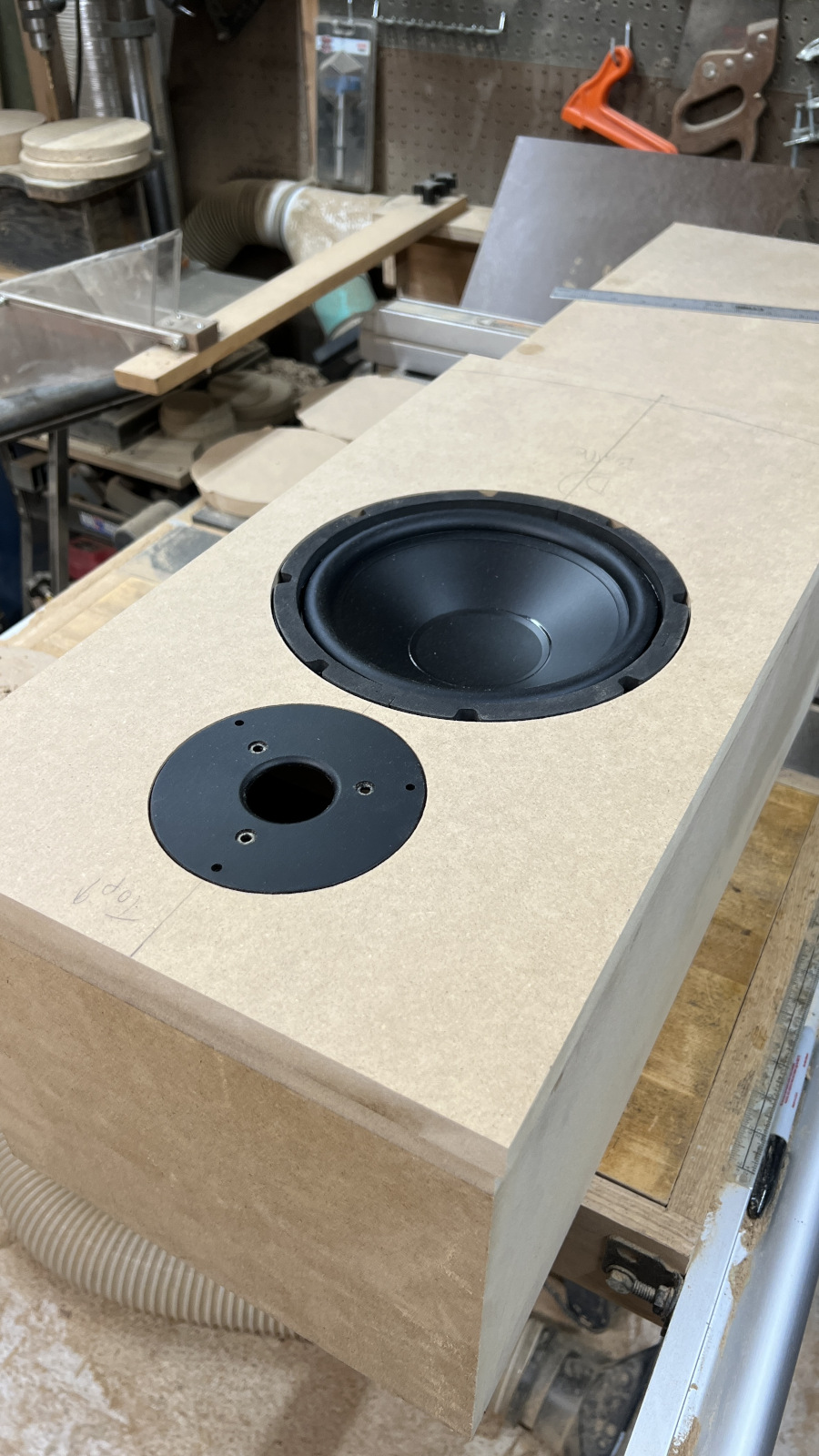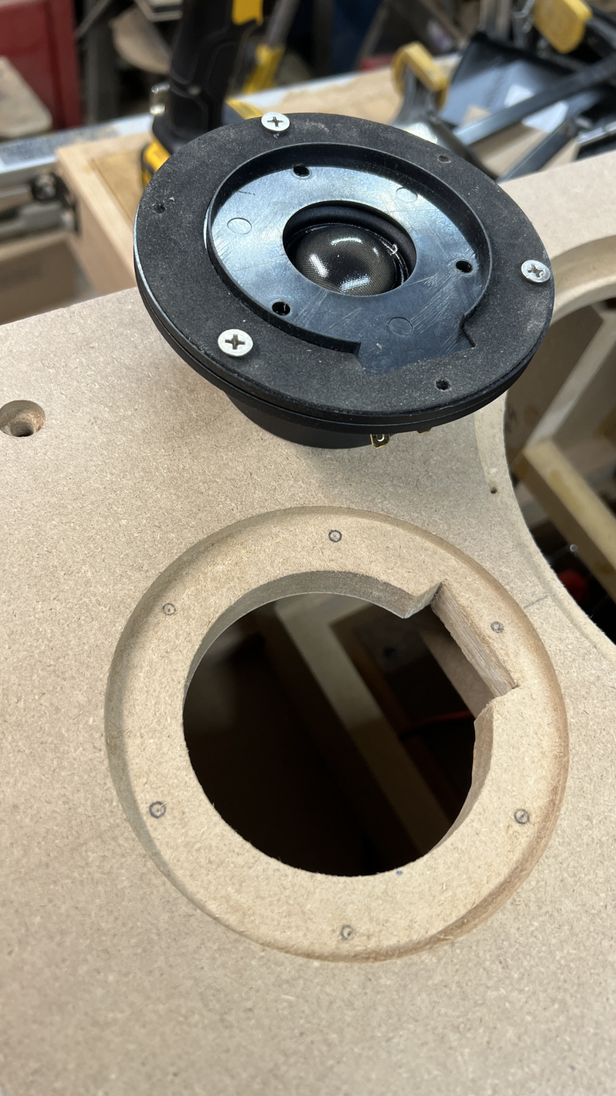 Made more sawdust - tweeters should fit just right after painting. I’m rethinking using #10 screws for the back. With only a 3/4” lip inside, there’s not much room if I countersink the finish washers.