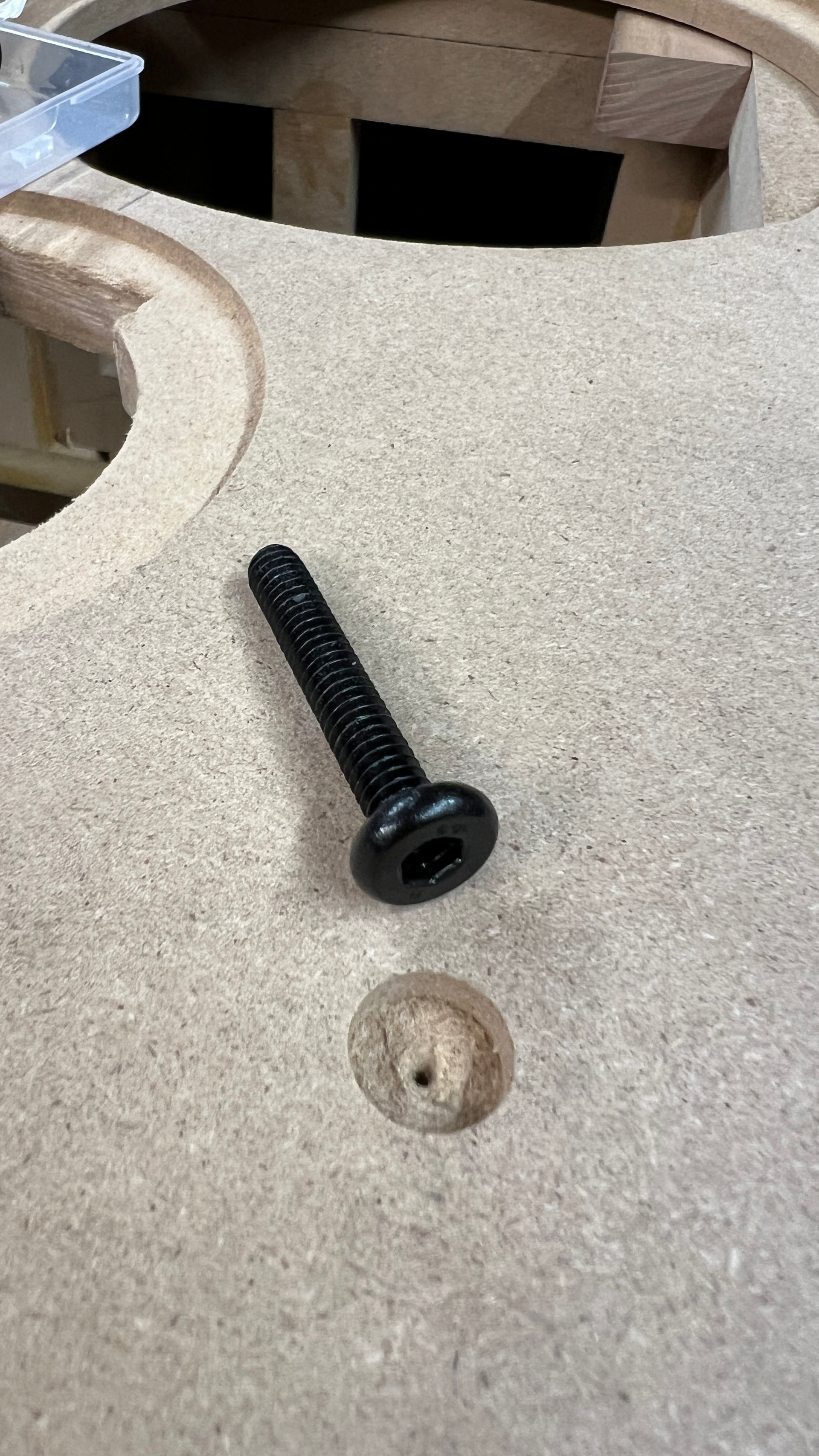 I think the heads on those are too big for where I’ll be drilling. I ordered some flat 1/4-20 bolts and matching black washers. I’m going to tap the oak inner runners so I won’t have to deal with T-nuts. I did something similar on my Rival/SB design in 2024.