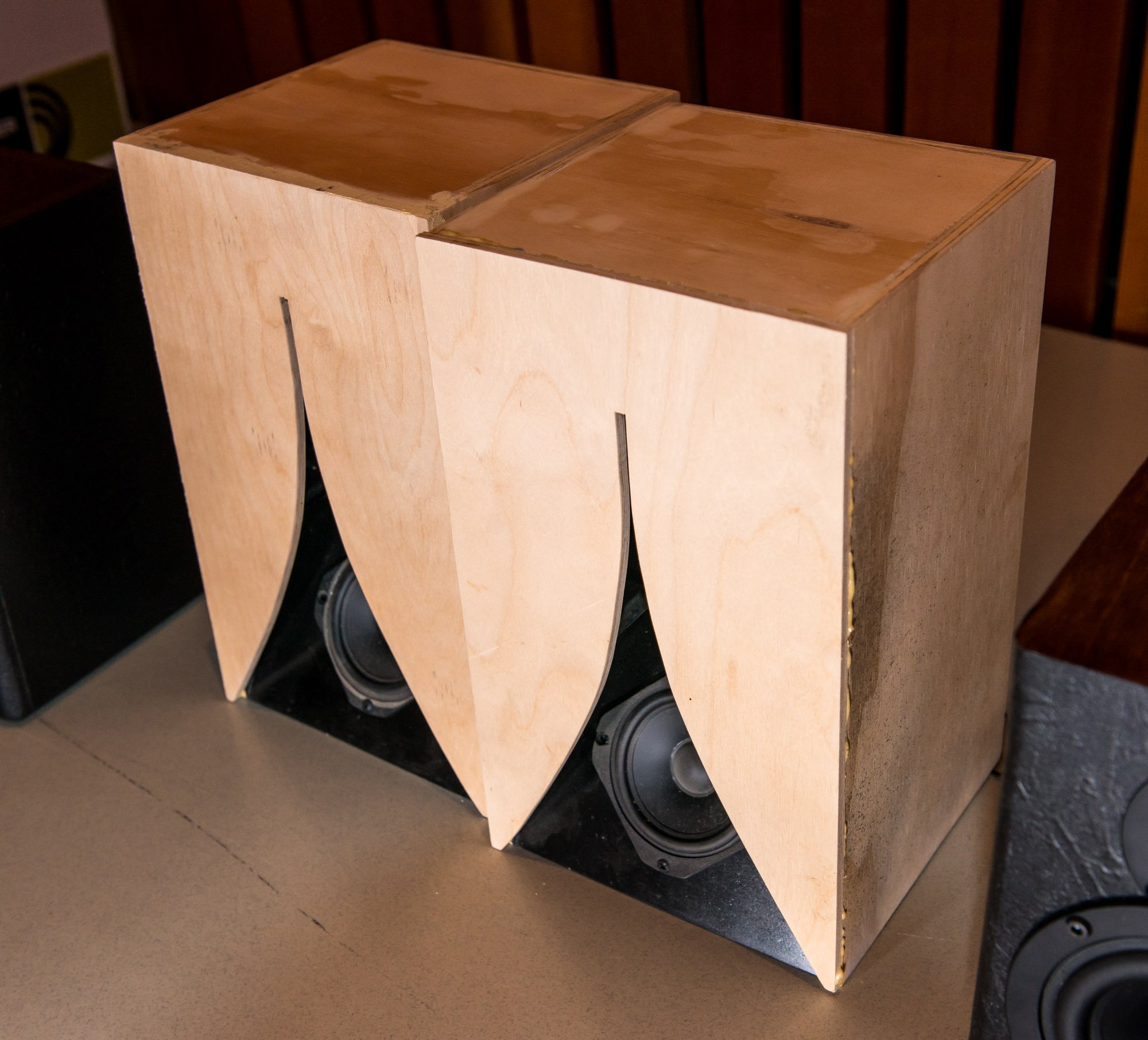 There is a builder that pretty much only does these over on DIYaudio. In case you don’t know, the port slot loads into the flared exit chamber over the top of the driver. The flare is shaped just like the also older compression driver tube-style flares. Higher frequencies exit toward the notch, lower near the floor/end. It was a way to control response and increase output with a horn loaded method.