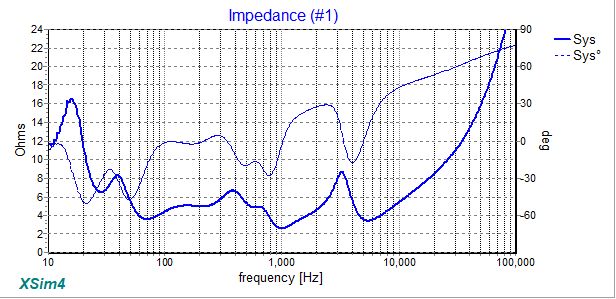 Impedance dips low at 1k, but phase is within 30 deg in that region and is zero at the bottom of the dip.
