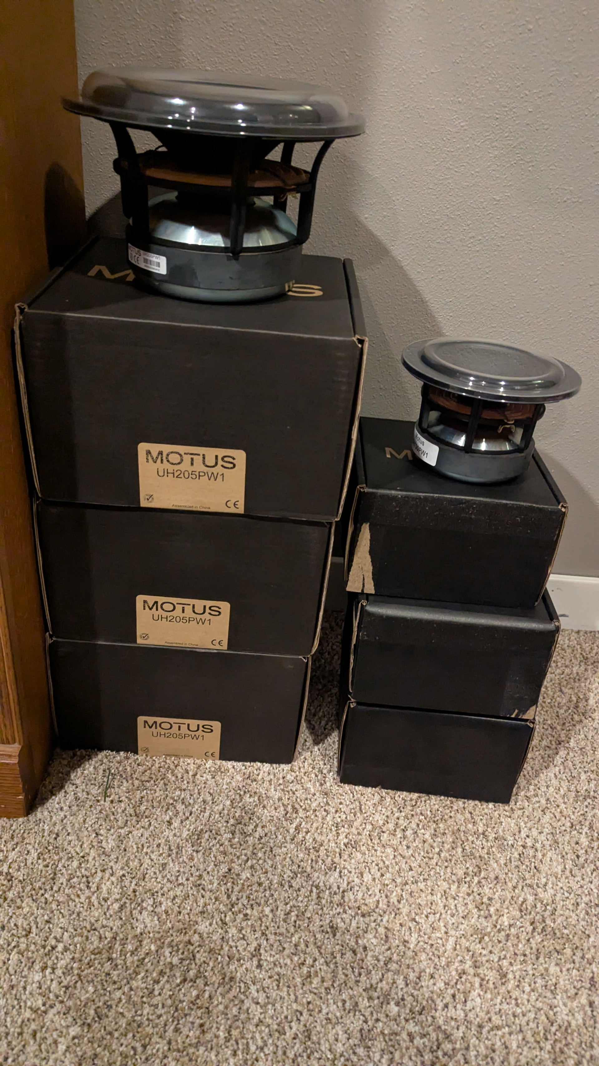 So wife let me spend some money with Cinergy yesterday - to the tune of four 8” Motus and four 5” Motus. I also bought another pair of Chinese beryllium tweeters, so will be building a close to end game MTMWW using these drivers.