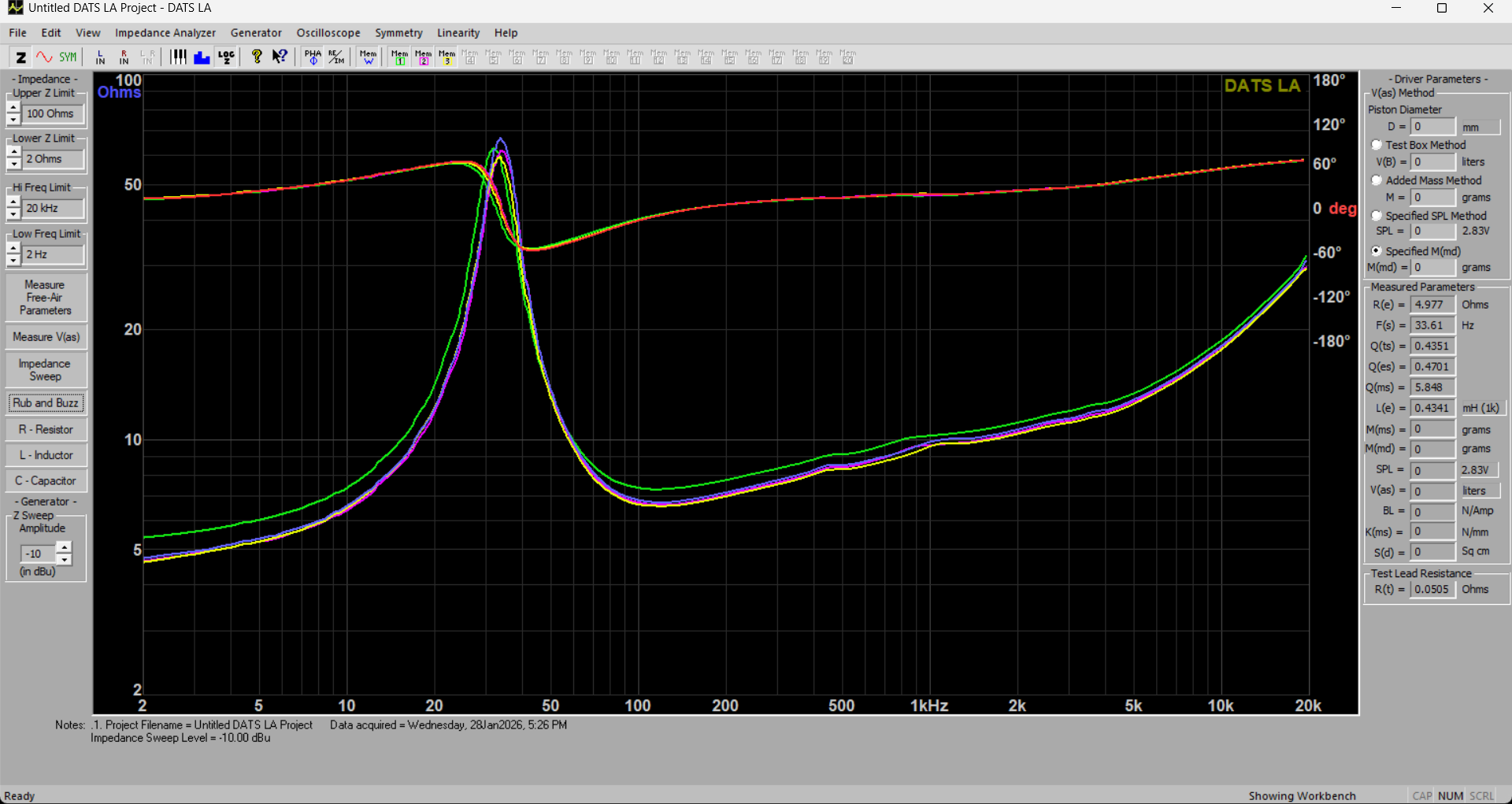 The result of this is that many of the ‘derived’ parameters can vary by larger amounts than any of the constituent physical quantities and dimensions of the speaker. Production tolerances for Fs on an assembly line are closer to +/-15%, and the Q values can vary up to +/-20%, with Qes usually varying less than Qms which is connected to Rms, and Qts varying as a function of Qes and Rms. Then Vas is a function of spring compliance and Sd. It’s the spring compliance Kms that varies the most, creating that 15-20% of variation, because the rubber components vary the most within a single batch and even being subject to ‘break-in’ settling over the life of the speaker, as well as being affected by component placement and centering, which can introduce bias in the spider or the surround at rest. Fs is controlled by Kms and by the Mms, which is usually pretty well controlled to within 5-10% between components but depends on how well the glue dispensing amounts and component centering are controlled on the line, so it is an aggregate of those mass tolerances for every single moving component of the speaker, and the placement of ‘flexible’ elements like the inner and outer surround flanges that like to move around and even be deformed in the bulk packaging.