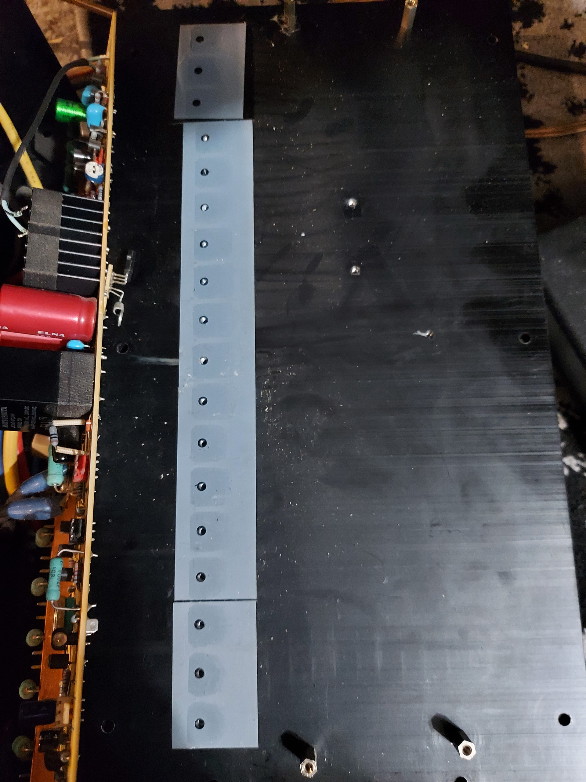 So I ordered the caps needed except the power supply caps. I took the transistors off the heatsink and the insulators are silicone without thermal paste. They were hell to unstick the transistors from them. I thought I was going to break them. Everything looks fine and I will probably just reuse the insulators unless someone says otherwise.