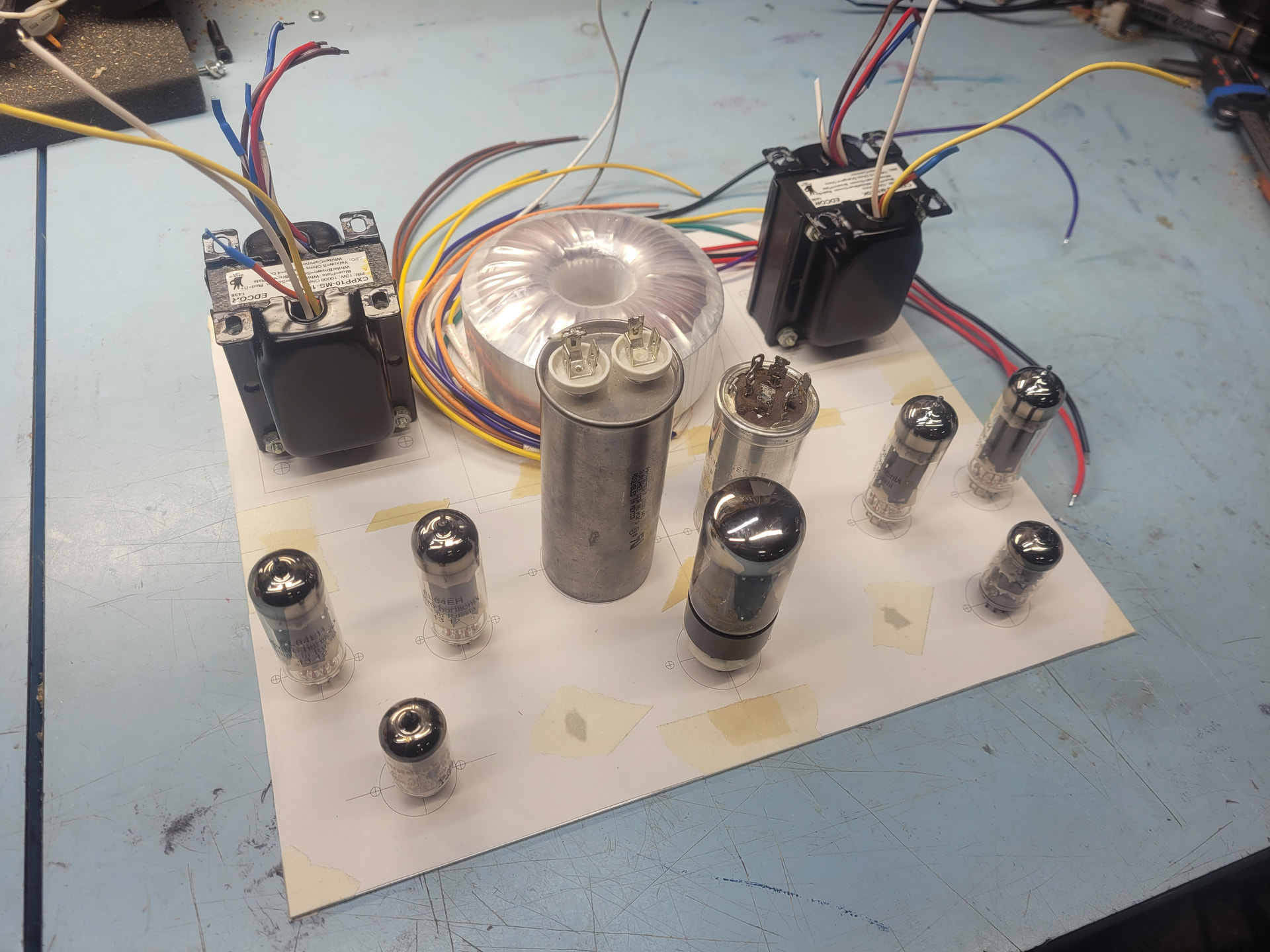 I did some load testing Sunday morning and realized that this power transformer Eric so graciously send me isn’t up to the task for this particular project. Never fear, I have a plan in my head to build a SET tube headphone amp with it… so it will end up in a good project eventually. Thanks again Eric!!!