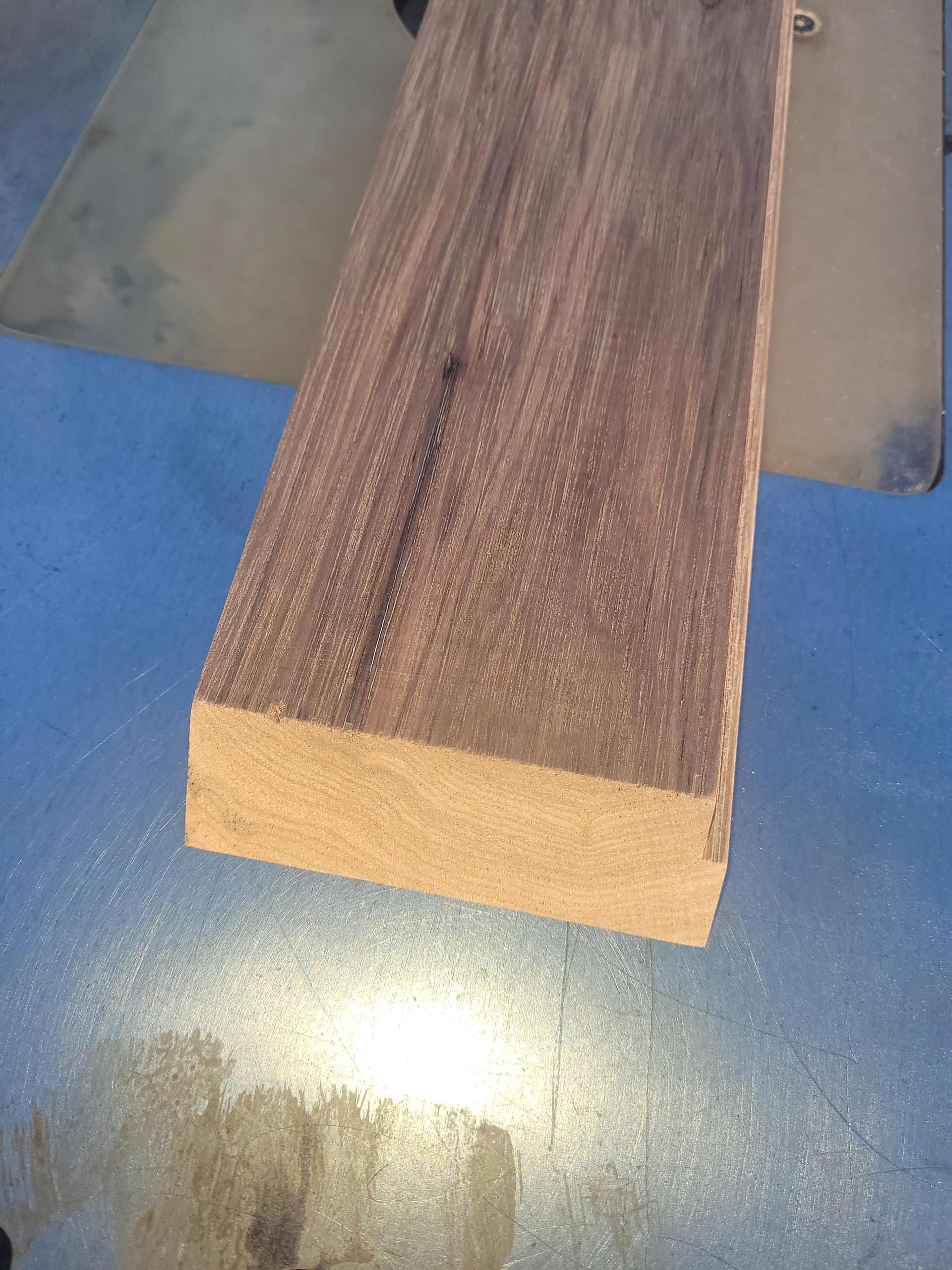 An urelated question for the more savy/experienced wood workers. I will be building the 4 sided case out of a 3.5” wide x 0.75” thick x 48” long hickory board. In the past I have cut the 45 deg ends by tilting the blade to 45 degs on my table saw, laying the board face flat and then use my sliding miter attachment set perpendicular to the blade to send them through. I always end up with some slight angle mismatch and sometimes some unfortunate tear out. It almost seems like the saw blade on a 45 deg angle is pulling the wood into or out of the cut depending on which side I’m cutting from. Does that even make any sense???