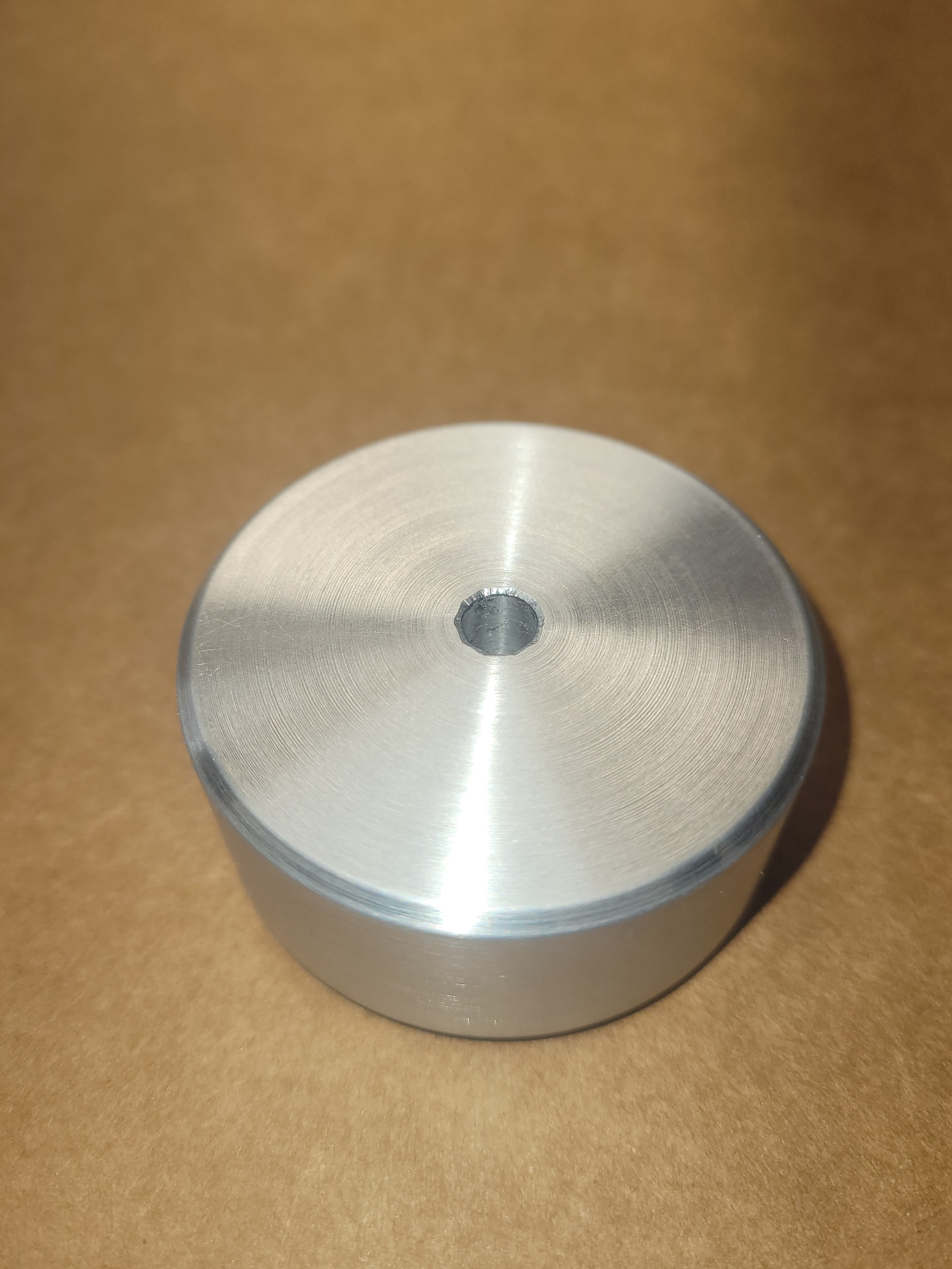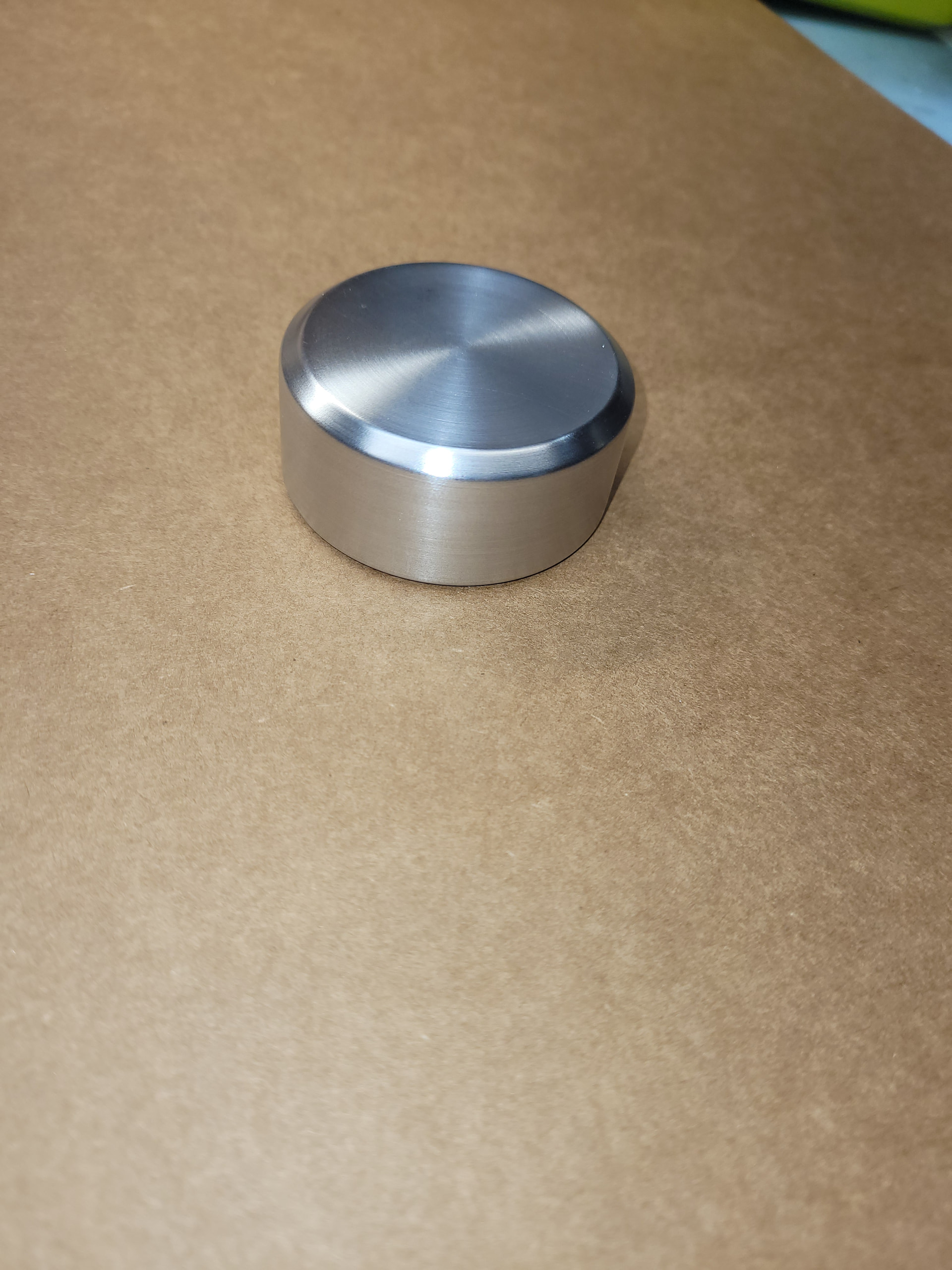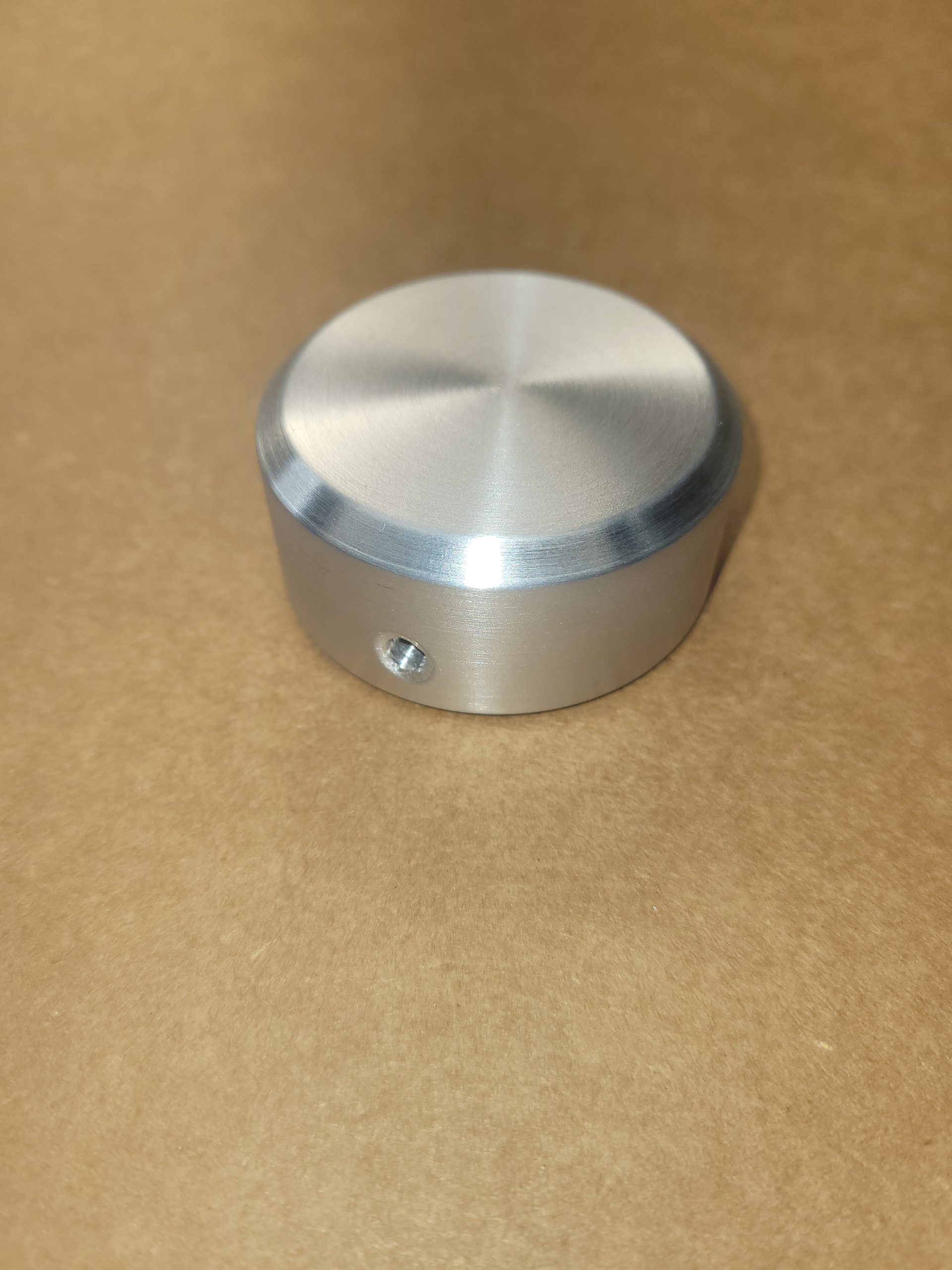 I found a big ugly chunk of aluminum stock in our scap bin at work and machined this volume knob over my lunch today.