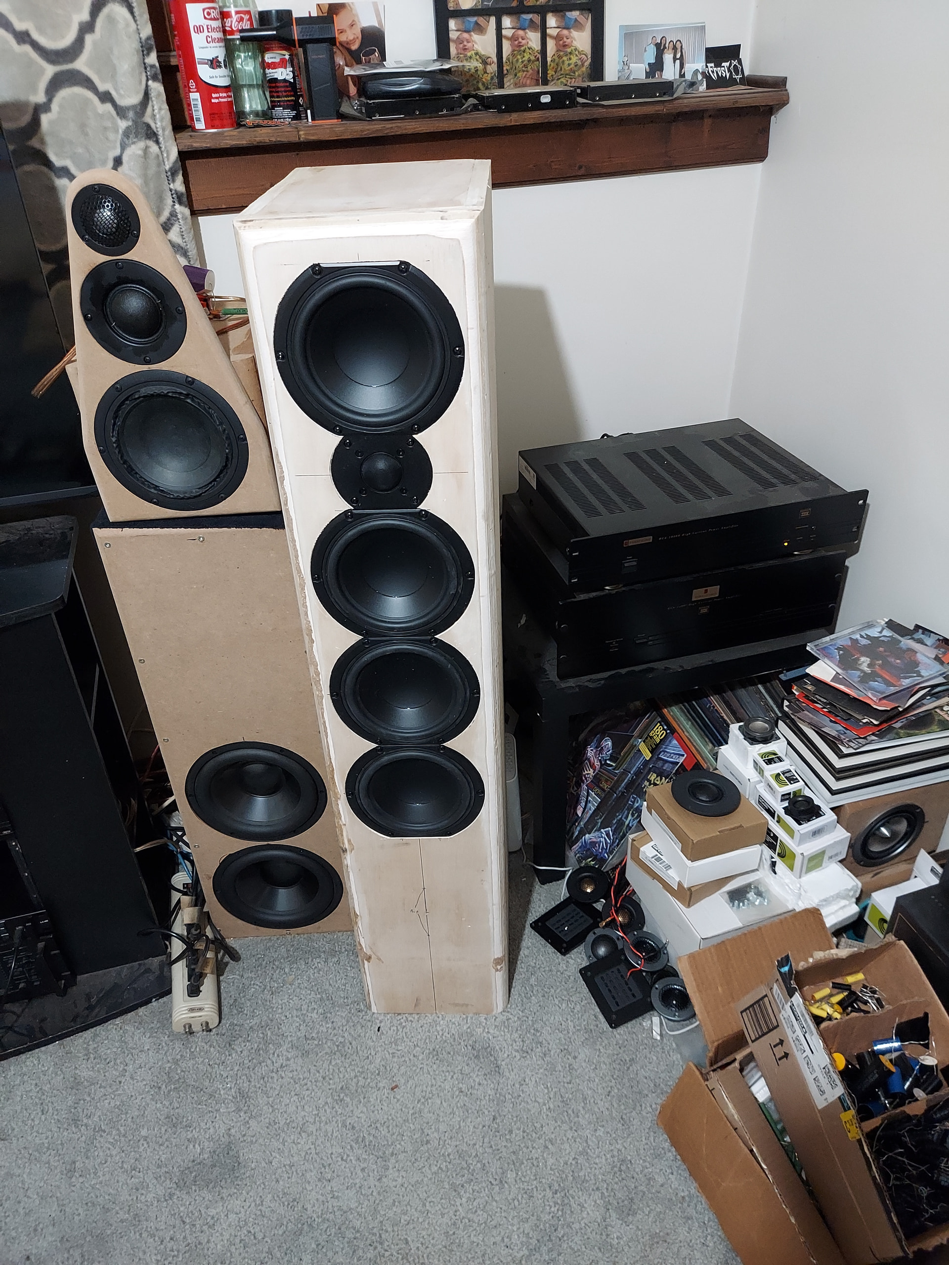 This is another design I came up with in the mid 90s that I never got to build. The mid-woofers are still Peerless but they are a bit different than the originals. They have nearly identical T/S parameters but they have truncated frames.