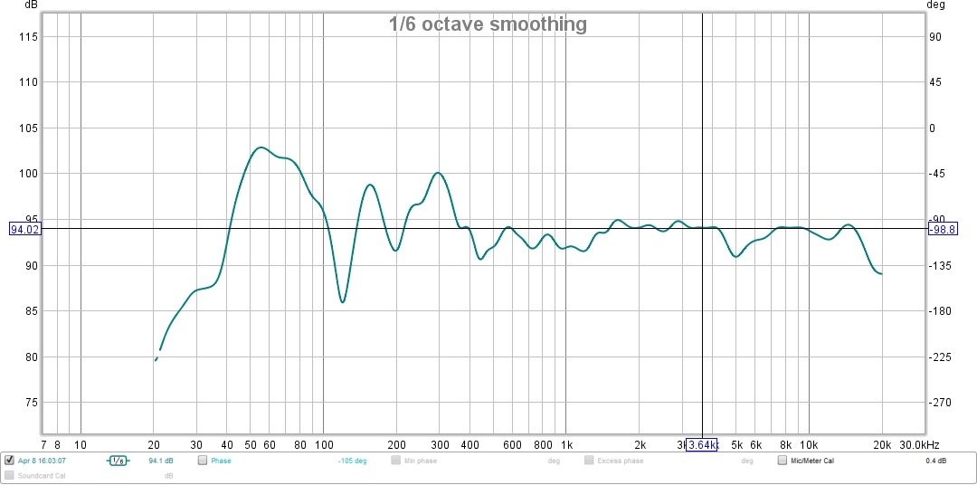 Impedance gets down to 2.6 ohms at the lowest but it is at 0 degrees phase. It is a 4 ohm speaker. I do have a large peak at 1100 hz. Don’t know why. Will have to investigate that.
