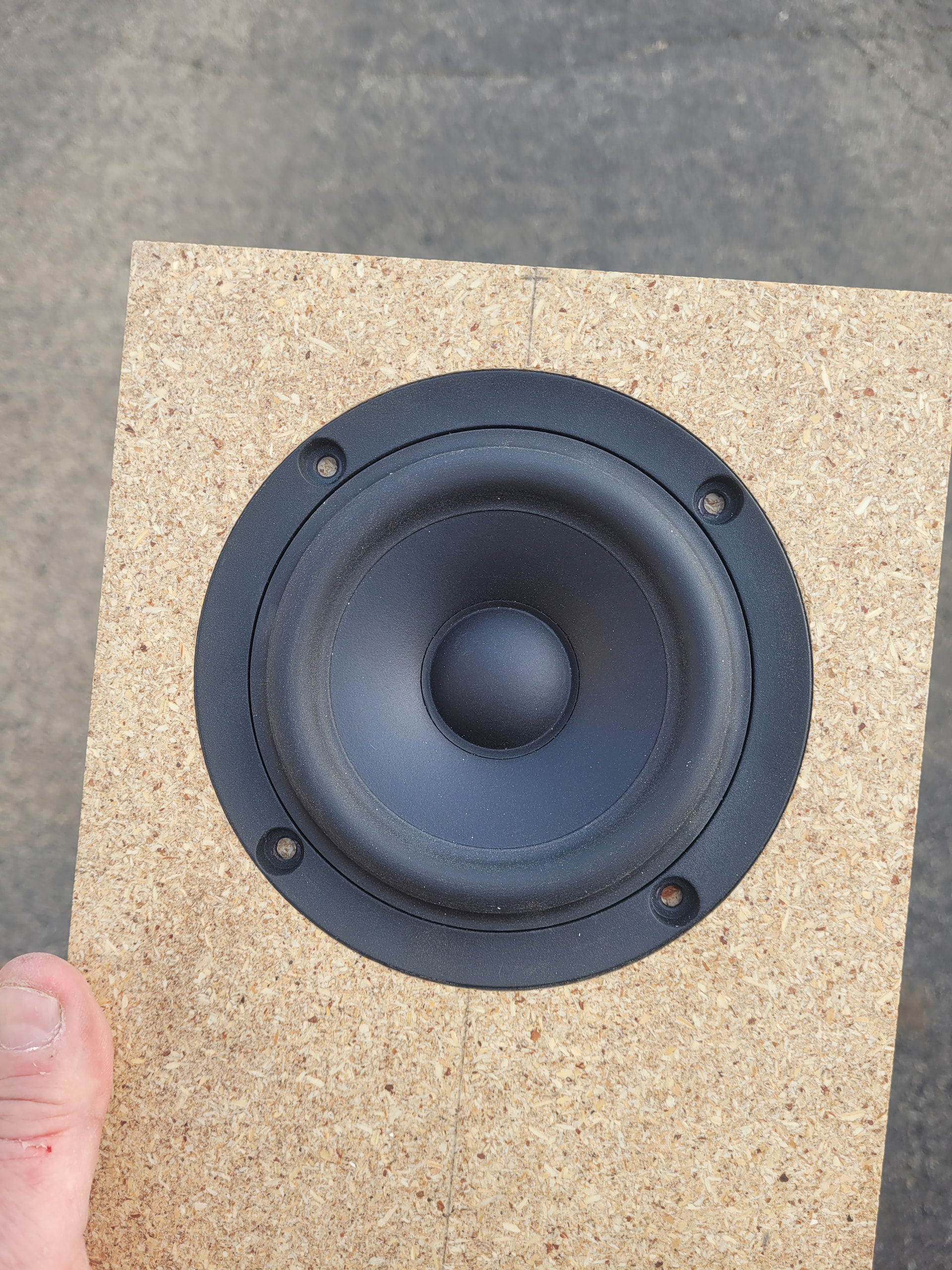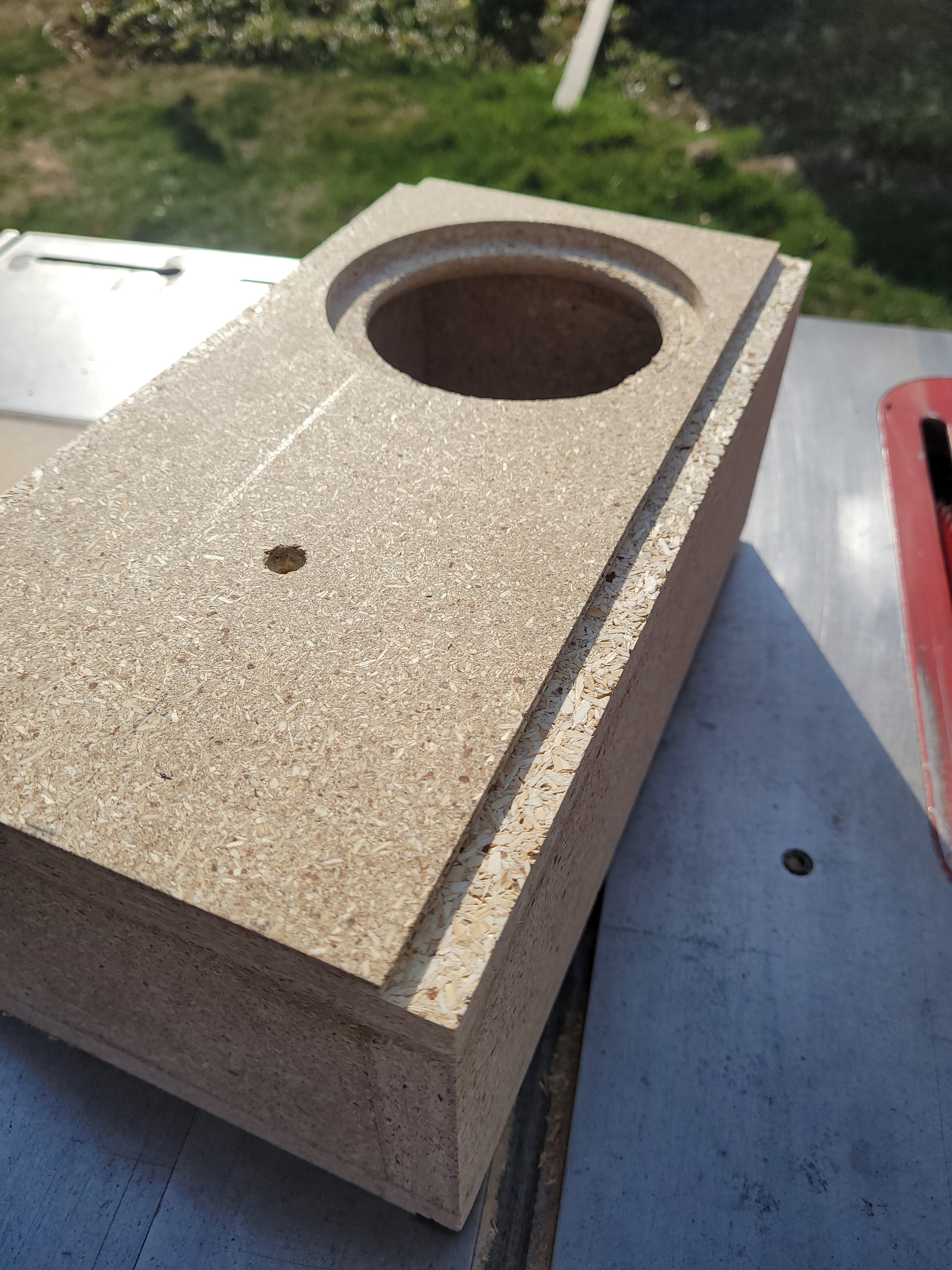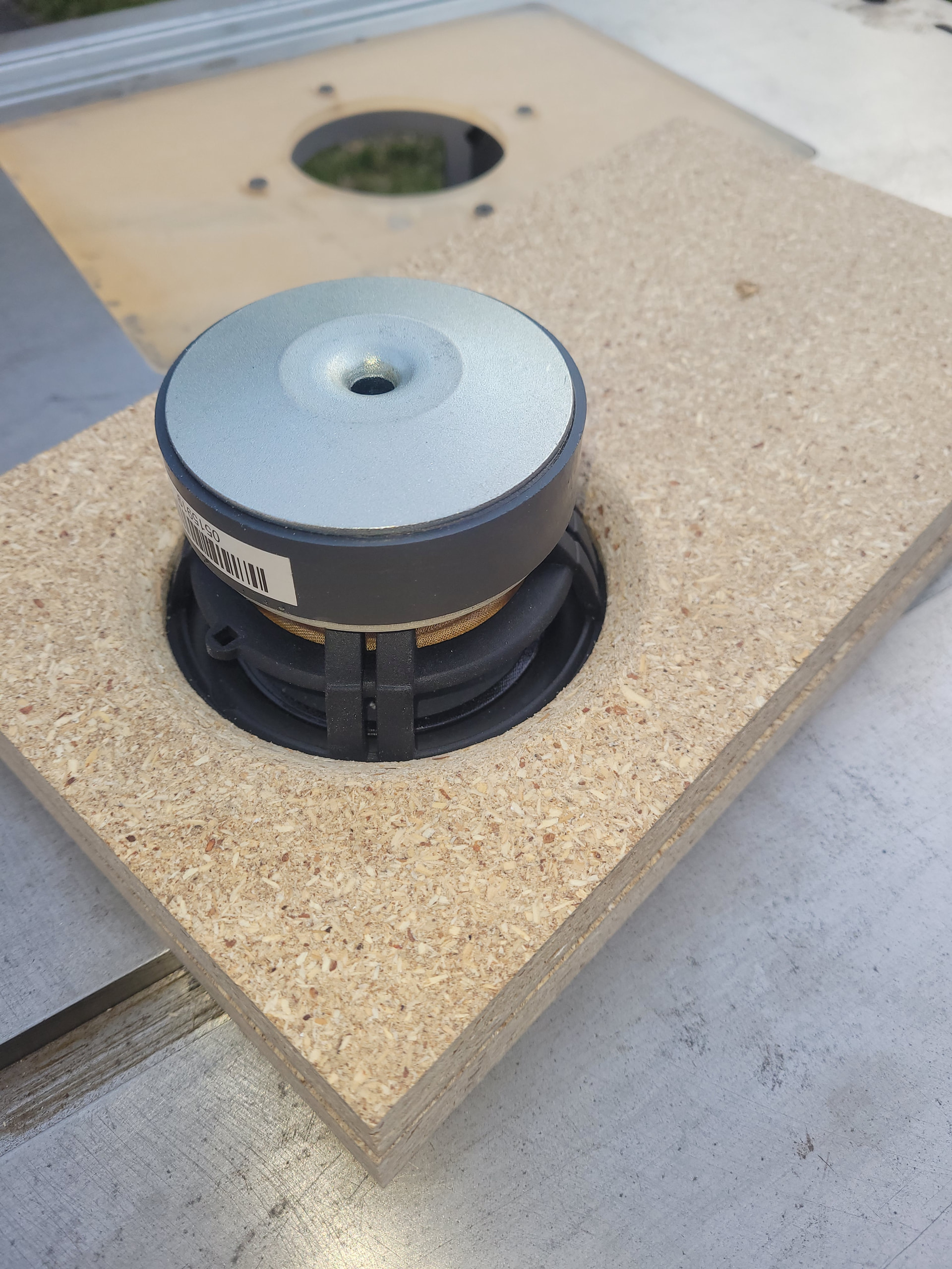 Another beautiful day here for this time of year. After getting my yard chores done I spent a little time flush trimming the enclosures. I built the bass bins last year as ported prototypes for a pair of MCM 55-5670. I built them with some super cheap and sightly damaged PB. I had to enlarge the through holes for the bigger Peerless. I’ll have to cut some block off plates to seal off the ports.