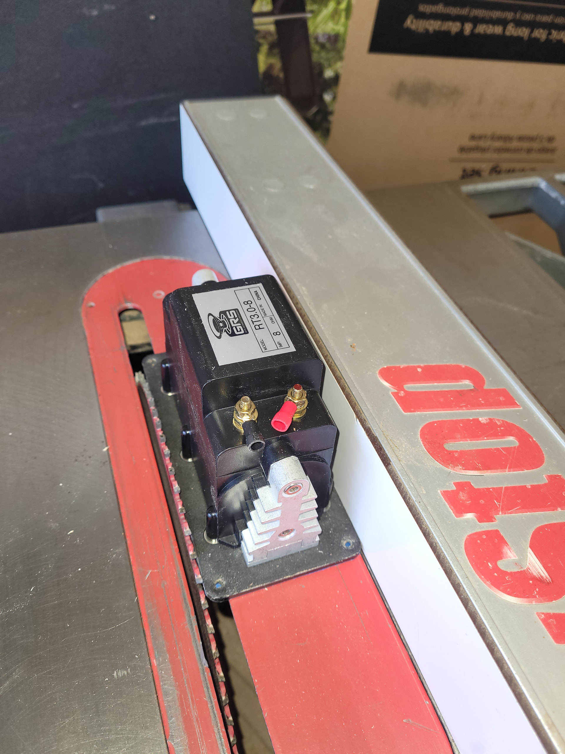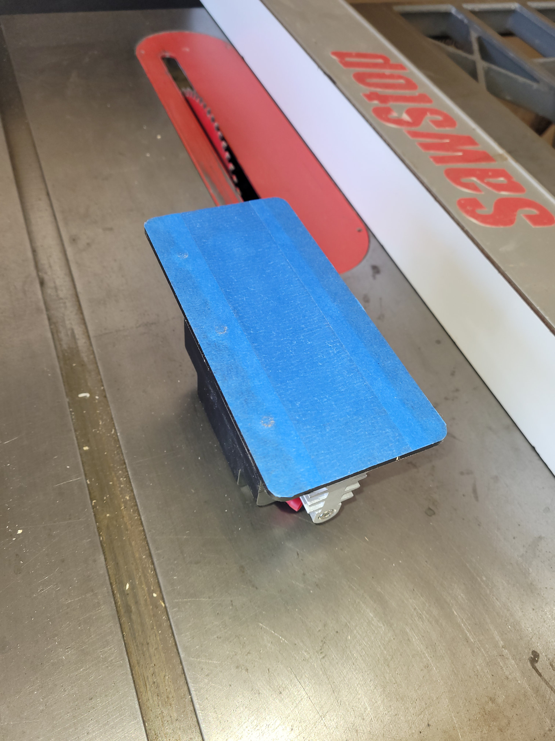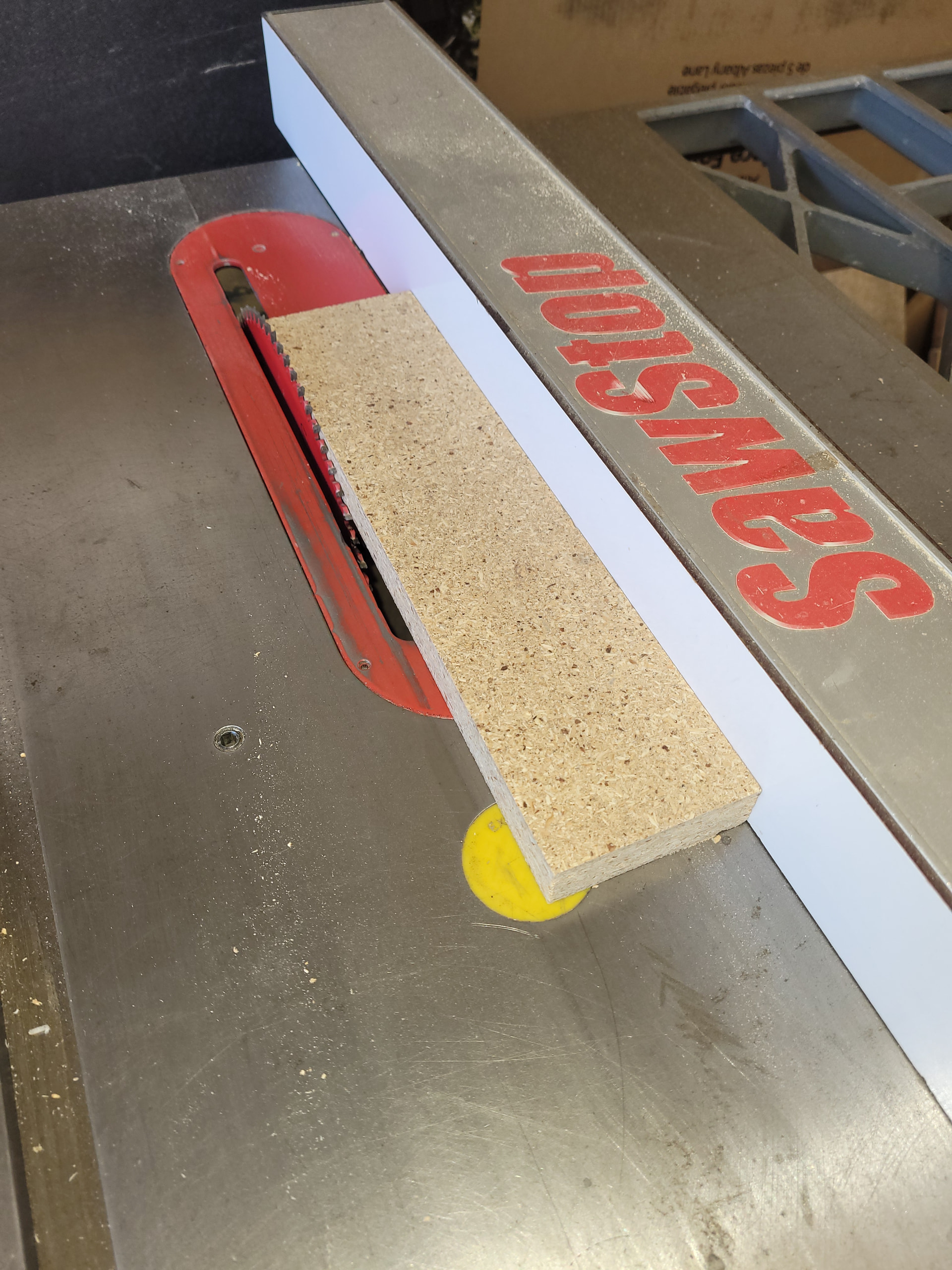 Second step: set the rip fence with the tweeter just barely touching the cutting edges of the saw blade’s teeth and the fence itself.