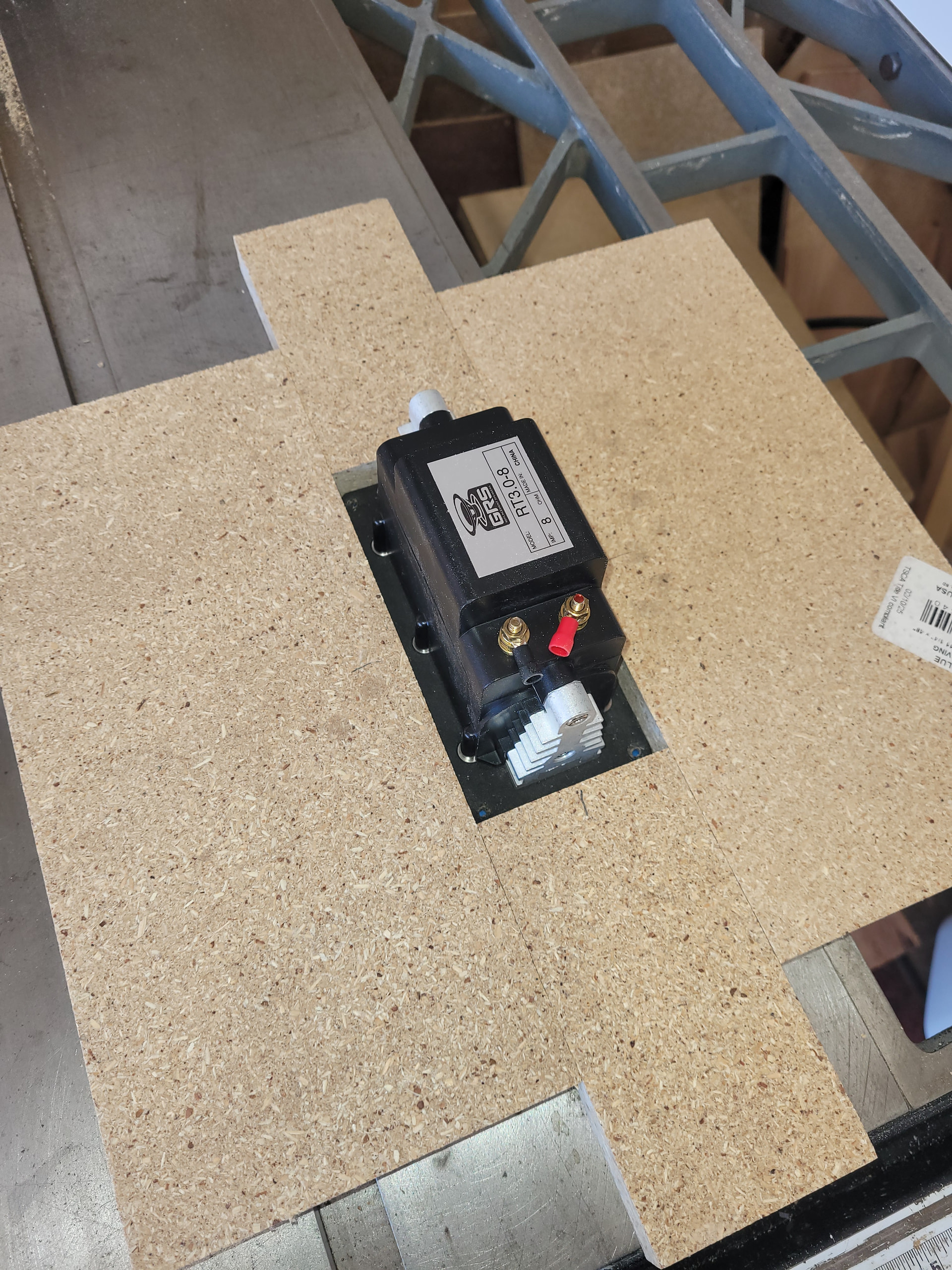 Third step: rip a piece of scrap wood the same width as the tweeter.