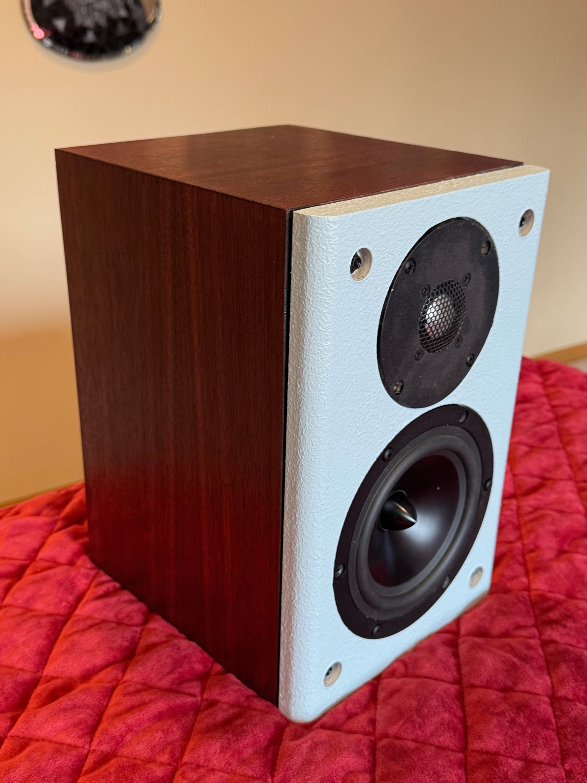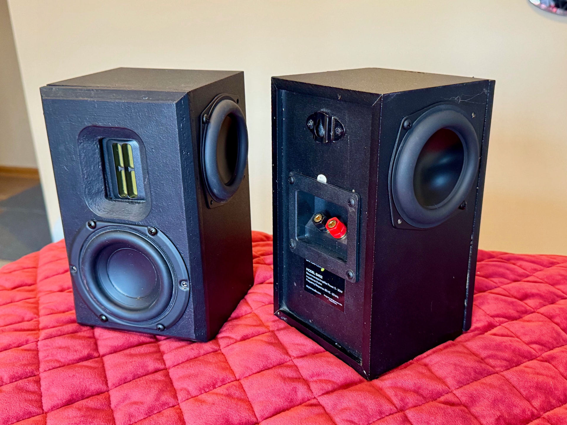 Not much to see here, just an old guy puttering in his basement. I’ve recently hit the end on a couple items. First is a rebuild of some gutted Dayton B452’s I got pretty cheap. They still weren’t worth it. I added a 5/8” baffle, 830855’s, some mysterious 8 ohm ribbons acquired on eBay years ago, ND105PR’s and a buyout terminal cup/XO. Expectations were not high, but I was pleasantly surprised. I’ve had PC speakers that were a lot worse.