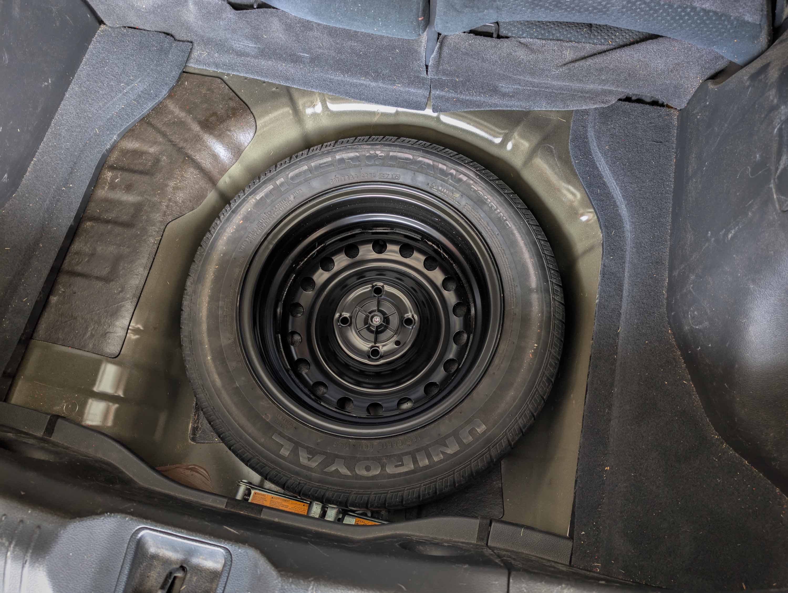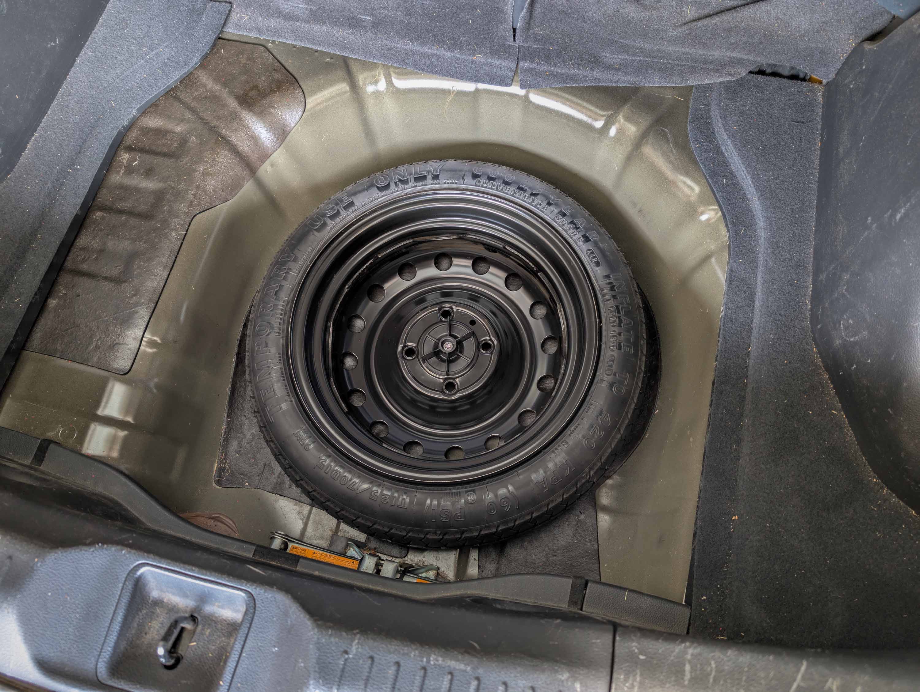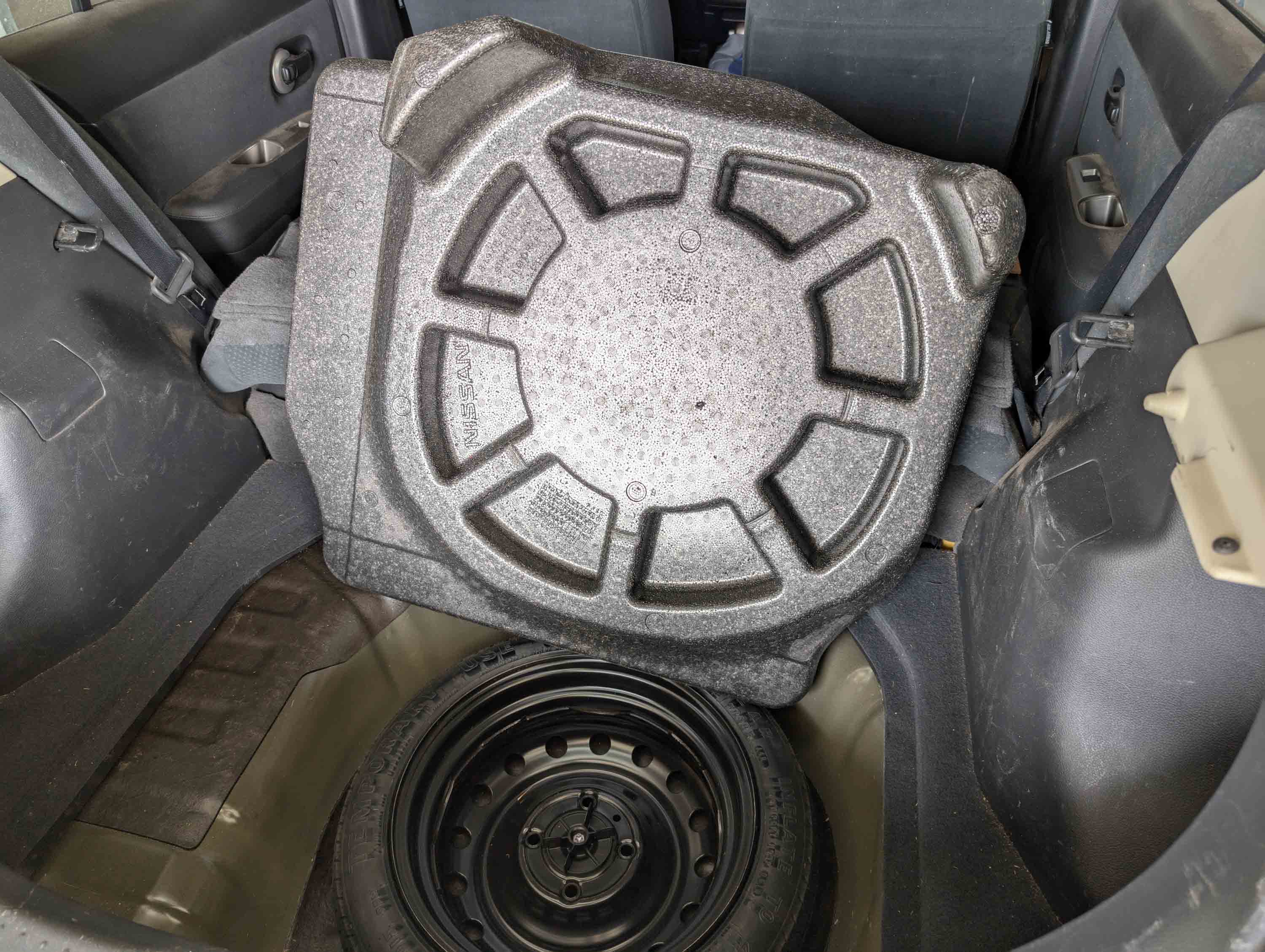 Replaced the space saver in my Versa with a full sized spare. Fits in like a glove, with lots of room for the jack and lug wrench as well. With the space saver installed, the dead space was filled in with a gigantic styro filler plug, so I replaced this plug with a thin board as a filler. I canât figure out why they would stamp the body this big when using a space saver? Makes no sense to me.