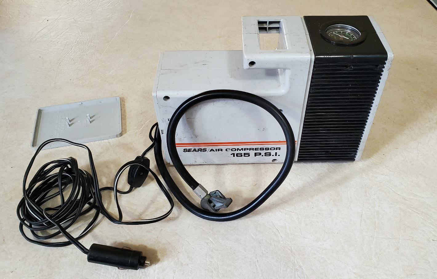 I picked up a used Sears 12V inflator at my local Re-store for $2. Got it home, hooked it up to my bench top power supply and discovered that it could not develop pressure at the nozzle. Took it apart and discovered that the small 1/4" ID hose between the pump and air pressure gauge had broken off. So I replaced the broken hose with some high pressure (133psi) stuff (fuel line) and now it works good. Tested it on my car. It is kind of slow, but works good. I can pump each tire up from about 30psi to 38psi in about 5 minutes. A completely flat tire would probably take about 10 to 15 minutes. The motor draws over 5 amps from the battery during operation and it makes a moderate amount of pumping noise. But it is not too bad. I lubed the pump piston sleeve and crank shaft bearing with new grease when I had it apart.