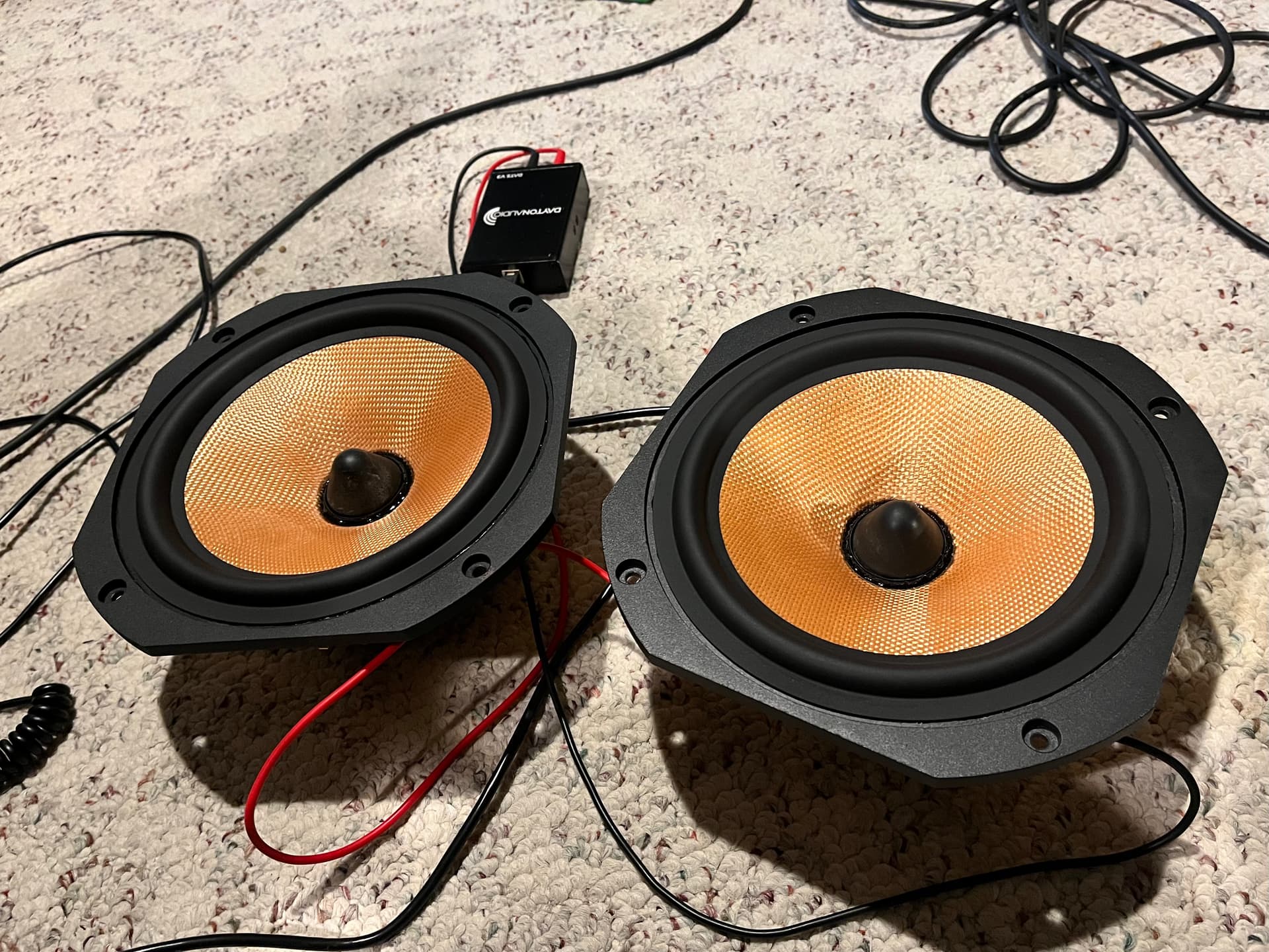 So after perusing AliExpress, I found some cone/surround parts. I ordered some neato orangish fiberglass cones with rubber surround. I then proceeded to try to remove the aerogel cone/surround from the VC/frame. Separating the cone from the VC at the neck joint was actually quite easy. A scalpel and some patience was all it took.