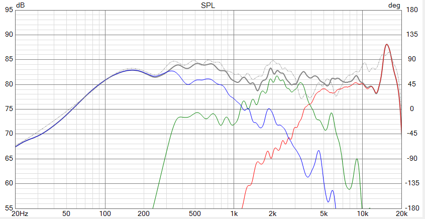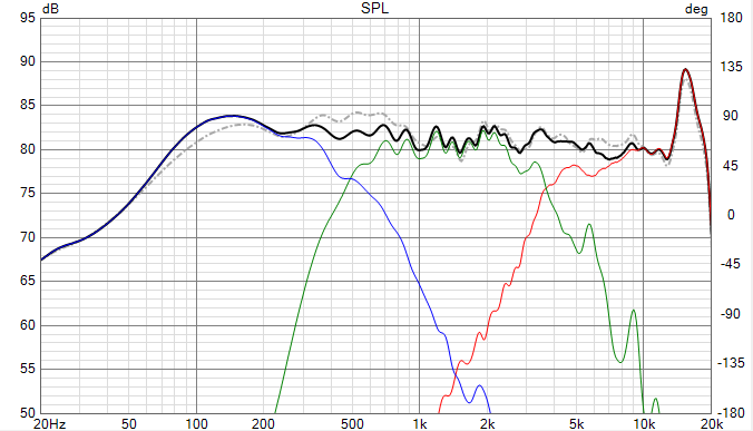Sat down and took some measurements. Tweeter and mid out to 45, though that was more from curiosity. Also took measurements of the speaker with the stock crossover, and modeled the same in Vituix: