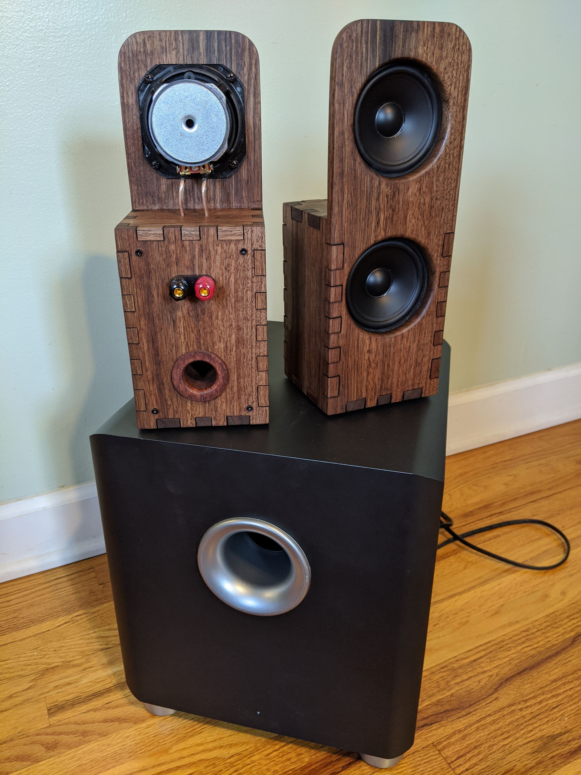 Here’s another speaker with a built in 12" powered sub. I had help with the big round overs.
