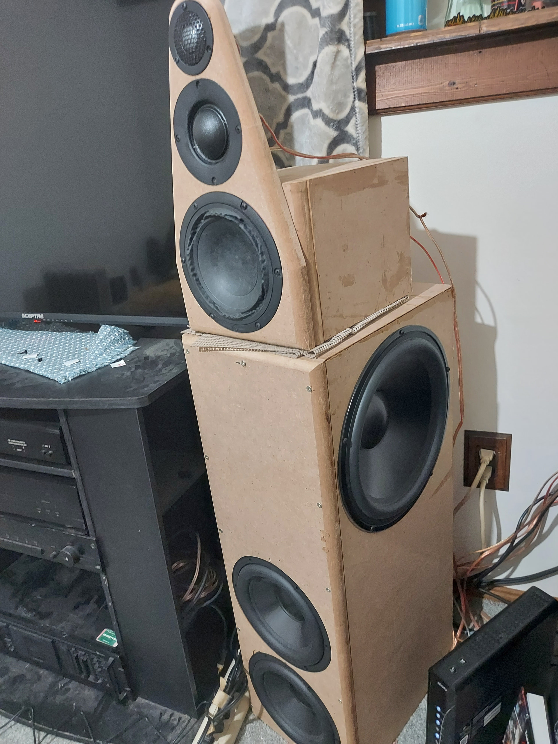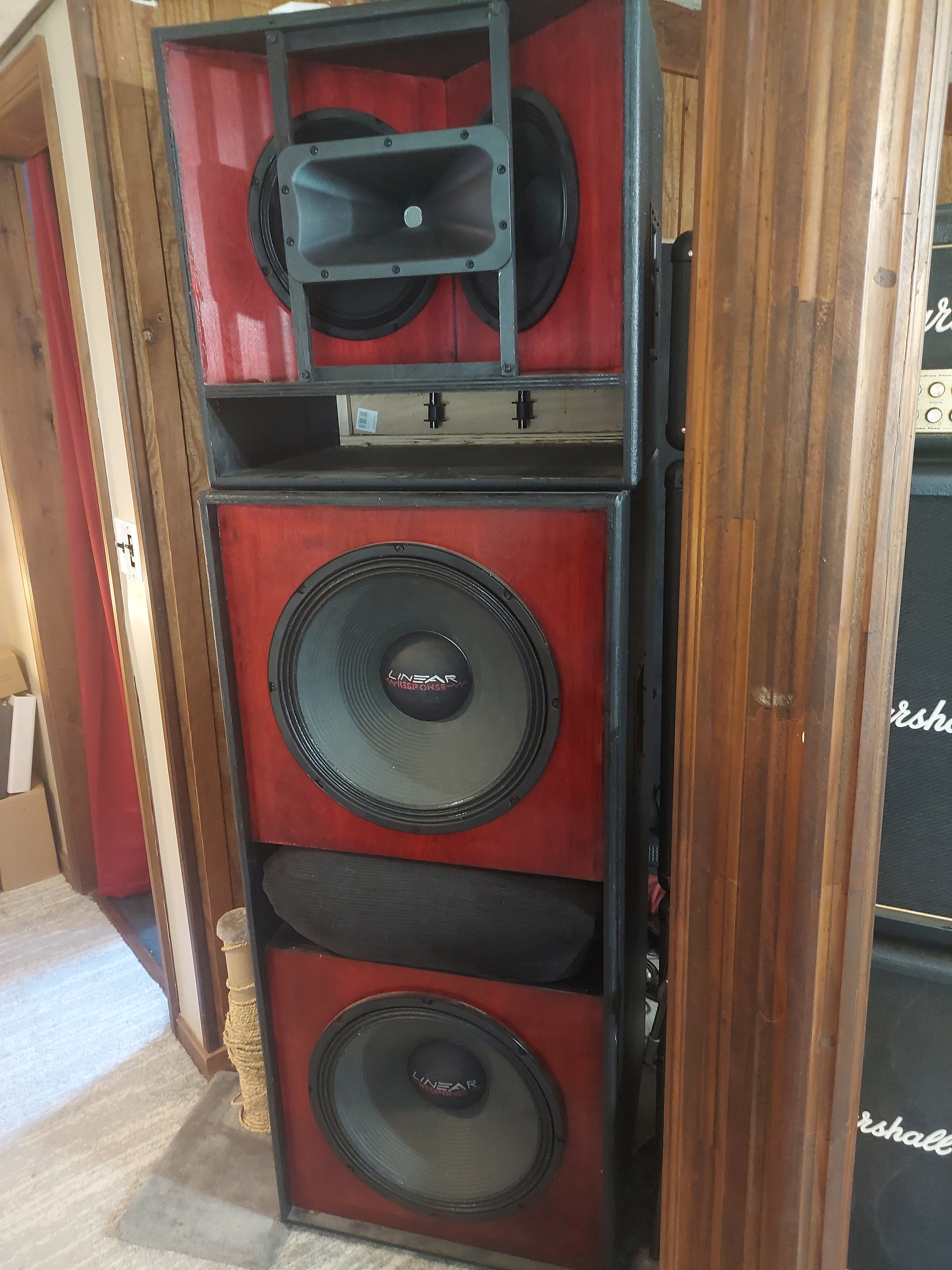I didn’t build the cabinets but I designed the system which was all active 26 years ago. It had all analog electronics including a linkwitz transform circuit for the Shiva sub. A few years ago I replaced the electronics with a Minidsp and a passive crossover between the mids and tweeter.