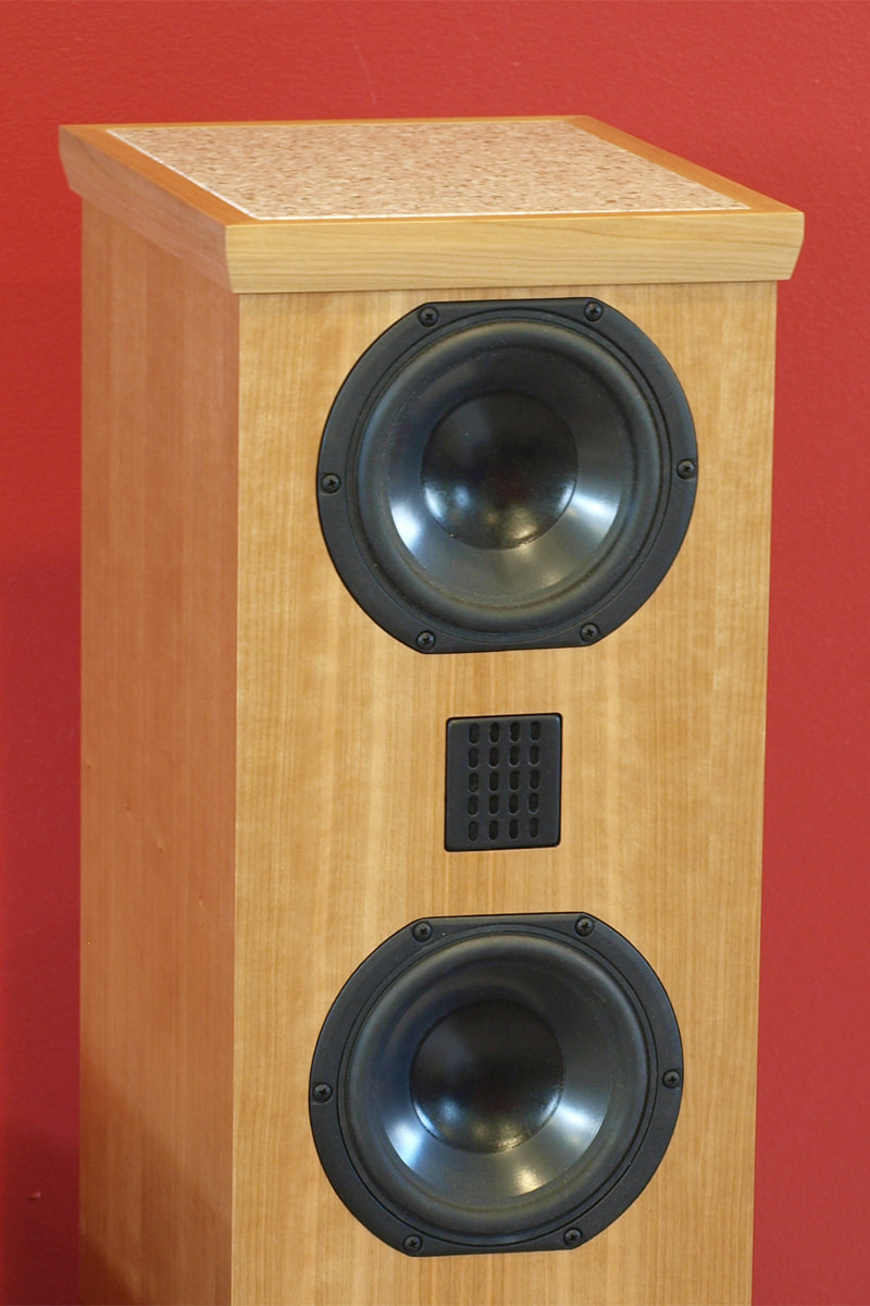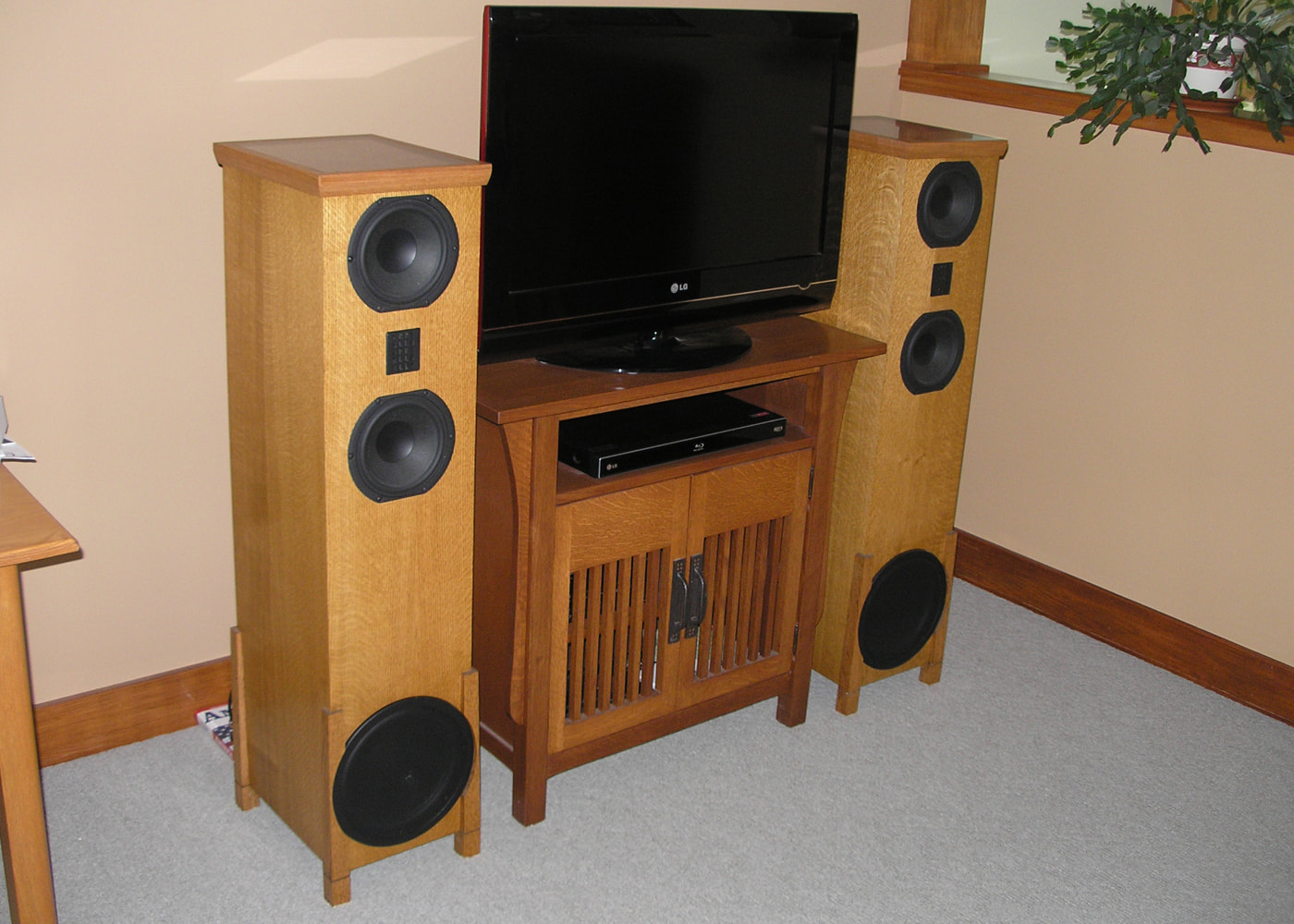 The Lydias and Allisons were wedding gifts for 2 sisters. I did everything except the legs and tops which were made by Weldon, the father of the brides. One pair is in oak and the other is in cherry. Any of the speakers listed below that weren’t made by me or that I had help on were by my good friend Weldon. He also built the equipment cabinet with tamboured doors in this picture