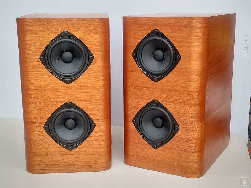 I didn’t build the hex cabinets but I did replace the woofer baffle and re-veneer it. The sub has a 12" Shiva woofer.