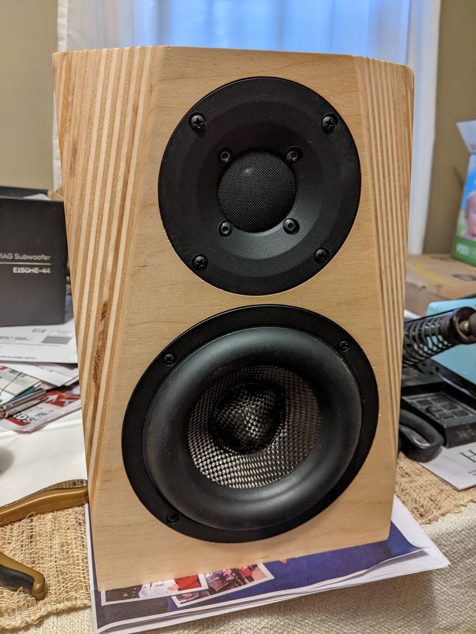 A speaker I helped my nephew with. He made the cutouts for the drivers and made the CTC a lot bigger than I wanted.